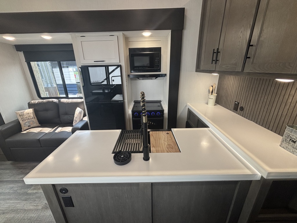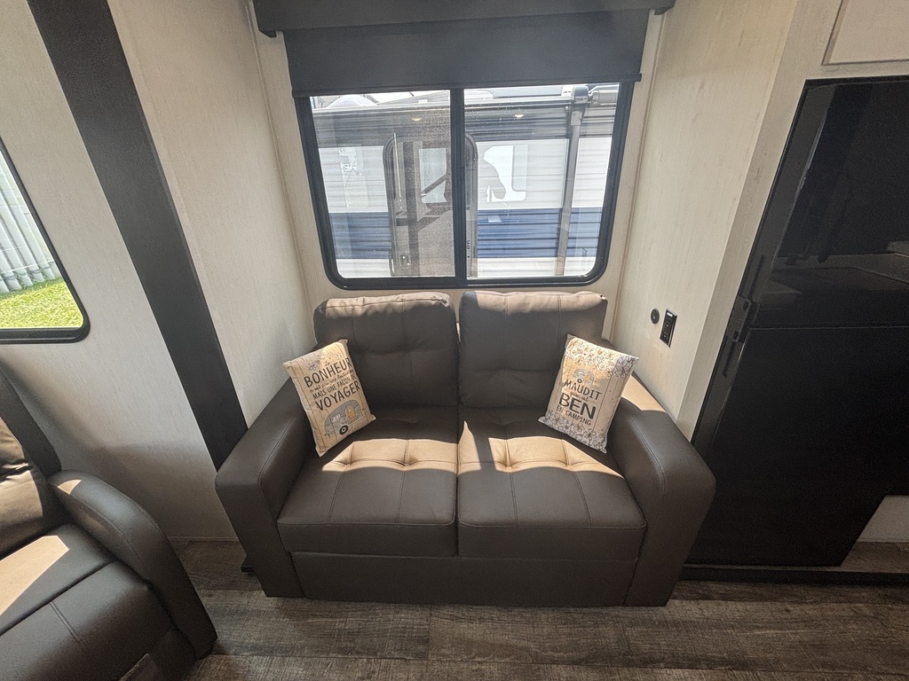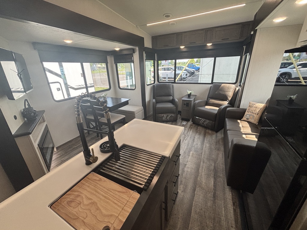 LIQUIDATION MODÈLE 2025 !!! VENEZ PROFITEZ DE NOS BAS PRIX 10 000$ DE RABAIS WOW !!!! ARCTIC Wolf 27 SGS 2025. Roulotte à sellette parfaite pour un couple! Elle pèse 7600lbs. La cuisine est entièrement équipée. Elle est munie d'un îlot central, d'un grand réfrigérateur, d'un four, d'un micro-ondes, d'un grand évier en acier inoxydable, ainsi que plusieurs armoires de rangement. À l'arrière vous retrouverez le salon équipé de deux fauteuils , d'un sofa-lit ainsi que d'un beau foyer électrique. Juste à côté du foyer se trouve la table avec deux chaises et en face une petite banquette qui peut recevoir deux personnes assises. À l'avant de l'unité, se trouve la chambre des maîtres. Elle est équipée d'un matelas queen et de rangement de chaque côté du lit ainsi que d'un garde-robe en face du lit. Dans la salle de bain, vous avez une belle douche vitrée avec pommeau de douche de qualité supérieure et une belle vanité avec rangement. Une belle nouveauté pour ce modèle 2025 un coup de pied aspirateur pour ramasser les saletés est inclus dans la roulotte . Cette roulotte est équipée d'un système de nivellement automatique, de marches solides et d'un très grand espace de rangement. Financement disponible sur place RÉGULIER: 75 995$..........SPÉCIAL: 65 995$ = RABAIS 10 000$!!!!!!! À VOUS POUR SEULEMENT: 146$/SEMAINE!! 0$ COMPTANT!! sur approbation du crédit seulement. LARRY CARAVANES 530 ROUTE DU PRÉSIDENT-KENNEDY LÉVIS SORTIE 325 SUD 418-838-0333 *Photos à titre indicatif*