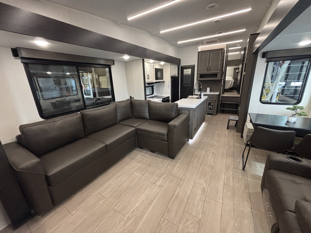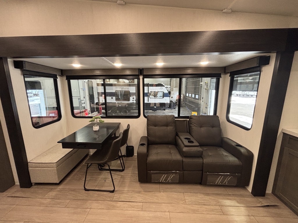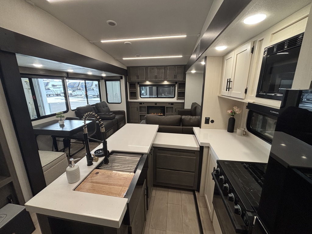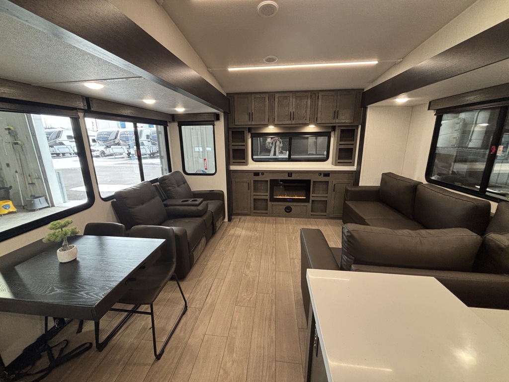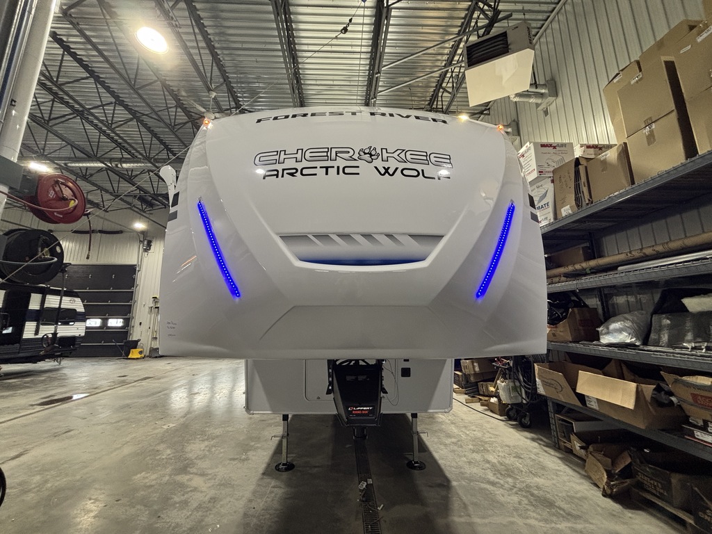 ARCTIC WOLF 289PANO 2026 ROULOTTE À SELLETTE POUR COUPLE AVEC UN POIDS DE 9300 LIVRES INTÉRIEUR; - Cuisine avec évier double, cuisinière avec dessus vitré, micro-ondes et grand réfrigérateur - Îlot central - Table avec rangement intégré, 2 chaises et un banc qui peut servir de rangement - 2 fauteuils inclinables - Grande fenestration qui entour l'arrière de la roulotte - Foyer électrique - Téléviseur rétractable dans le meubles du foyer - Sofa sectionnel qui se transforme en lit - Lumières avec gradateur dans l'ensemble de la roulotte - Système d'aspiration Roadvac pour faciliter le nettoyage - Chambre arrière avec grand lit et beaucoup de rangement - Salle de bain centrale avec douche en verre et belle vanité - Chauffage/climatisation EXTÉRIEUR: - Marches ultra robustes - Auvent extérieur électrique avec lumières - Coffre de rangement - Système auto-nivelant photos à titre indicatif