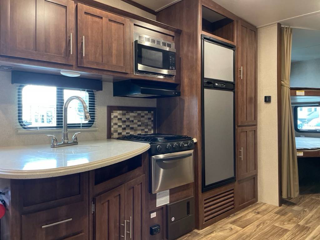 VOLANTE 270BH 2018 Fifth Wheel Volante 270BH 2018 Mesure 30'5'' et pèse 7 704lbs. Elle peut accueillir 8 personnes pour le coucher puisqu'elle possède des lits superposés, un canapé-lit, une dinette en U ainsi qu'un lit Queen dans la chambre des maîtres. Dispose d'un extension au niveau de l'aire commune. cuisine et salle de bain complète. Centre du VR : Votre expert en véhicules récréatifs au Québec Découvrez le plus vaste inventaire de VR neufs et d'occasion au meilleur prix. Que vous cherchiez une roulotte, une caravane à sellette (fifth wheel), une caravane-portée, un motorisé ou une remorque, notre équipe vous propose les plus grandes marques : Roulottes et Fifth Wheels : Rockwood, Flagstaff, Cougar, Springdale, Sunset Trail, Chaparral, Columbus, Impression, Kodiak, Coleman, E-Pro, Cruiser RV. Motorisés (Classe A, B, C) : Axis, Hurricane, Fleetwood, Four Winds, Coachmen Cross Trail, Prism, Echelon, Outlaw, Beyond, Nova. Remorques et Équipements : NN, Apogée, Armorteck et génératrices Ducar ou Cummins. Bien plus que de la vente : Un service complet Département de pièces et boutique : Un inventaire massif de pièces de remplacement et d'accessoires de camping pour améliorer votre confort. Service et réparation : Un centre de service spécialisé pour l'entretien et la réparation de vos unités, assuré par des techniciens experts. Financement : Profitez de nos solutions de financement avantageuses directement sur place. Un modèle vous intéresse ou vous avez besoin d'un entretien ? Contactez-nous pour une demande d'information ou passez nous voir en succursale pour une visite ! Note : Les photos et options peuvent différer de la réalité.