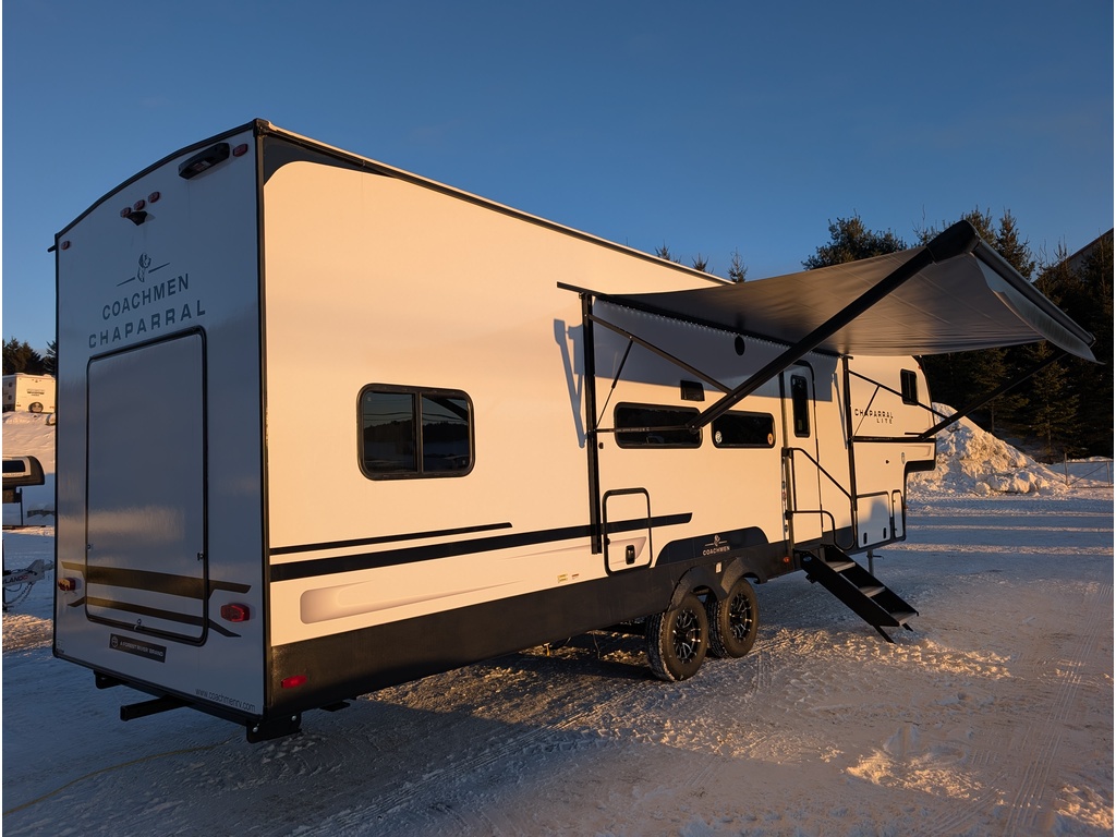 LA CARAVANE À SELLETTE CHAPARRAL 31BH A UNE LONGUEUR HORS TOUT DE 37 PIEDS 3 POUCES POUR UN POIDS DE 8725 LBS, 1 EXTENSION, PORTE CARGO À L'ARRIÈRE AVEC 6 ANCRAGES (FAIT POUR VÉLO STANDARD OU ÉLECTRIQUE), BANQUETTE EN U 79X40, SOFA LIT 64X61, RÉFRIGÉRATEUR AVEC CONGÉLATEUR 10.7 PI/CU, FOUR AVEC CUISINIÈRE À 3 BRÛLEURS, MICRO ONDES, TÉLÉ, RADIO, HAUTS PARLEURS JBL, GRAND LIT 80X60, 2 LITS 86X58 SUPERPOSÉS DANS LE GARAGE TRANSFORMABLE EN SOFA, RÉFRIGÉRATEUR EXTÉRIEUR, AUVENT ÉLECTRIQUE AVEC BANDES DE LUMIÈRES LED ET PLUS ENCORE! TRÈS BELLE ROULOTTE AVEC BEAUCOUP DE RANGEMENT! VENDUE INSPECTÉE ET GARANTIE. À SEULEMENT 40 MINUTES DES PONTS DE QUÉBEC. LIVRAISON DISPONIBLE PARTOUT AU QUÉBEC! PROFITEZ DE NOTRE FINANCEMENT FACILE ET RAPIDE. POUR PLUS D'INFOS, WWW.VRMAGUIRE.COM, SANS FRAIS 1-888-799-0874, BUREAU 418-774-5066, CELL OU MESSAGE TEXTE KEVIN 418-386-0025, AU PLAISIR DE VOUS SERVIR ET À BIENTÔT! **TOUJOURS LES MEILLEURS PRIX DU MARCHÉ**
