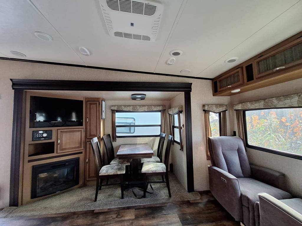 CrossRoads Rv Cruiser Aire 28RL 2017Caravane à sellette Cruiser Aire 28RL 2017 Cette Fifth Wheel mesure 37'05'' et pèse 7 980 lbs. Cette unité peut accueillir jusqu'à six personnes au coucher, car elle possède un lit Queen, une dinette et un canapé-lit. La cuisine est complète avec fourneau, cuisinière trois brûleurs, hotte et micro-onde. Salle de bain avec douche, toilette et vanité. Extérieur en fibre de verre, avec auvent rétractable électrique, réservoir d'eau fraîche de 40 gal., d'eaux usées de 120 gal. et un réservoir de propane d'une capacité maximale de 40 lbs. Cuisinette extérieure complète. *** Prendre note que les photos et les options décrites peuvent différées *** Toute l'équipe de Centre du VR est fière de vous présenter le plus vaste inventaire de véhicules récréatifs neufs et d'occasions à vendre au Québec. Vous y trouverez notamment les marques Columbus, Rockwood, Impression, Kodiak, Coleman, Cruiser RV, Flagstaff, E-Pro, Springdale, Sunset Trail, Cougar, Chaparral, Bontrager Outdoors, motorisés Axis, Hurricane, Outlaw, Coachmen Cross Trail, Prism, Echelon, Fleetwood, Four winds, Compass, Beyond, Nova et Pixel. Remorques N&N, Apogée et Armorteck sont aussi disponibles. En inventaire pour vous, la série de génératrices Ducar. Vous avez un coup de coeur ? Envoyez-nous une demande d'information. Financement sur place. N'oubliez pas également que rien ne vaut une visite du modèle qui vous intéresse pour vous aider à prendre une décision éclairée. Passez donc nous voir afin de jeter un coup d'oeil plus détaillé à nos caravanes et caravanes à sellettes neuves.