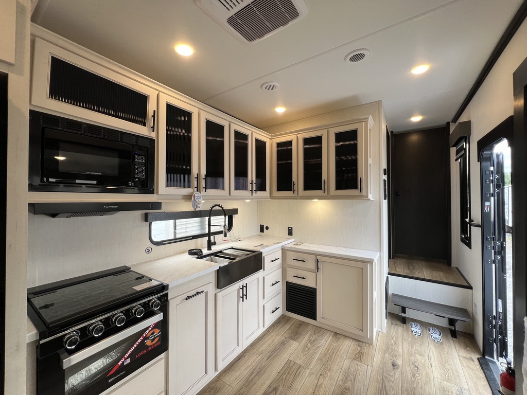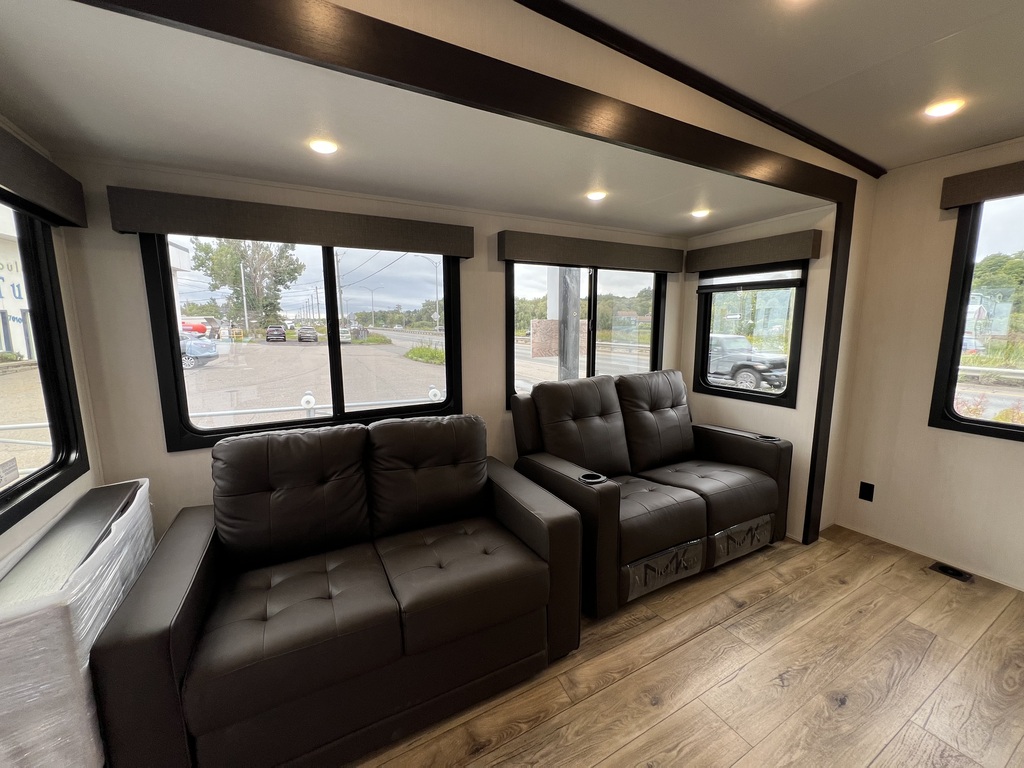 Magnifique fifth wheel Peut accueillir jusqu'à 4 personnes Chambre fermée avec lit queen à l'avant Canapé-lit Grande fenestration Cuisine équipée Réfrigérateur et congélateur Micro-ondes Plaque de cuisson Salle de bain complète Grande cuisine Espace de vie convivial Intéressé(e) ? Venez voir ! Rien de mieux qu'une visite en personne pour solidifier votre opinion. Chez Roulottes Turmel, notre équipe motivée et dévouée saura vous rassurer et vous aider dans vos recherches. Notre but est d'offrir le meilleur service-conseil relatif aux véhicules récréatifs ainsi qu'aux produits de qualité s'y rattachant. Nous saurons trouver ce qui vous conviendra pour rendre vos futures expériences de voyage et de camping inoubliables. *L'unité en stock pourrait légèrement différer des images présentées.
