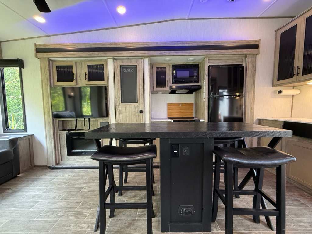 Forest River Cherokee Arctic Wolf 3880 2021Fifht Wheel – Forest River 3380 Cherokee Artic Wolf 2021 - Le Forest River Cherokee Arctic Wolf 3880 Suite (2021) est une roulotte de luxe conçue pour offrir un maximum de confort, d’espace et d’autonomie lors de vos escapades en nature. Voici ses 5 points forts à retenir : Dimensions & Capacités : • Longueur totale : 43.17 pieds • Poids à sec : 10 678 lbs • Réservoir d’eau douce : 49 gal • Réservoirs d’eaux usées : 105 gal • Couchages : Jusqu’à 8 personnes 5 caractéristiques principales : • Très grand et spacieux - Ce VR est très grand, avec plusieurs sections qui s’ouvrent sur les côtés pour offrir encore plus d’espace à l’intérieur. On s’y sent comme dans un petit appartement. • Confort pour toute la famille - Il peut accueillir jusqu’à 8 personnes grâce à un grand lit, des lits superposés et un canapé qui se transforme en lit. Parfait pour une famille ou un groupe d’amis. • Ambiance chaleureuse - À l’intérieur, on retrouve une cuisine avec un îlot central, un foyer électrique pour une belle ambiance, et des fauteuils confortables avec chauffe et massage. • Bien équipé pour toutes les saisons - Que ce soit l’hiver ou l’été, il est bien isolé, chauffé et climatisé pour rester confortable toute l’année. • Autonome pour le camping - Il est équipé de réservoirs d’eau et de bonbonnes de propane, ce qui permet de camper plusieurs jours sans avoir besoin de se brancher tout de suite. En résumé, ce modèle est idéal pour ceux qui recherchent un VR spacieux, confortable et bien équipé, que ce soit pour de courts séjours ou des aventures prolongées. Il combine praticité, confort et ambiance chaleureuse pour des souvenirs inoubliables en famille ou entre amis. *** Prendre note que les photos et les options décrites peuvent différées *** Toute l'équipe de Centre du VR est fière de vous présenter le plus vaste inventaire de véhicules récréatifs neufs et d'occasions à vendre au Québec. Vous y trouverez notamment les marques Columbus, Rockwood, Impression, Kodiak, Coleman, Cruiser RV, Flagstaff, E-Pro, Springdale, Sunset Trail, Cougar, Chaparral, Bontrager Outdoors, motorisés Axis, Hurricane, Outlaw, Coachmen Cross Trail, Prism, Echelon, Fleetwood, Four winds, Compass, Beyond, Nova et Pixel. Remorques N&N, Apogée et Armorteck sont aussi disponibles. En inventaire pour vous, la série de génératrices Ducar. Vous avez un coup de coeur ? Envoyez-nous une demande d'information. Financement sur place. N'oubliez pas également que rien ne vaut une visite du modèle qui vous intéresse pour vous aider à prendre une décision éclairée. Passez donc nous voir afin de jeter un coup d'oeil plus détaillé à nos caravanes et caravanes à sellettes neuves.