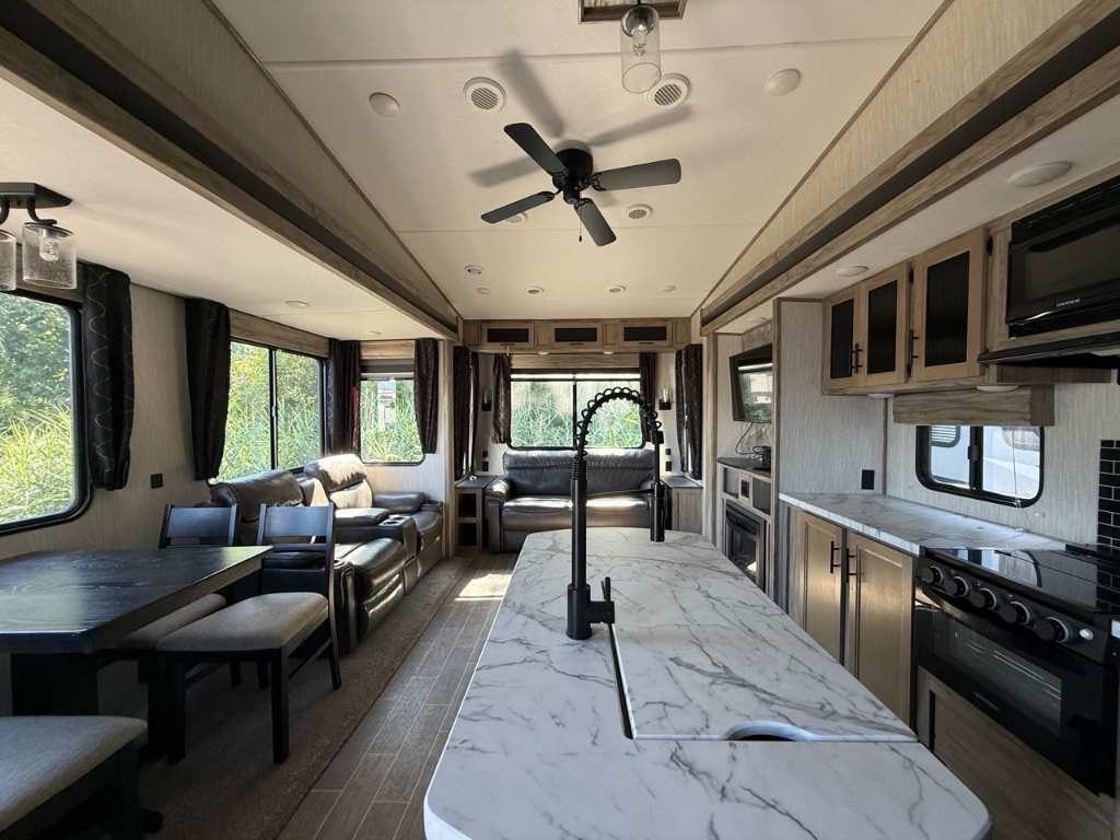 Forest River arctic wolf 291rl 2020Fifth Wheel – Forest River 2020 – Cherokee Artic Wolf 291RL - Le Cherokee Arctic Wolf 291RL (2020) est une fifth wheel confortable, parfaite pour voyager à deux ou en petit groupe. Dimensions et capacités : • Longueur : 33.5 pieds • Poids à sec : 8 358 lbs • Réservoir d’eau douce : 49 gal • Réservoirs d’eaux usées : 70 gal • Couchages : Jusqu’à 4 personnes 5 caractéristiques principales : • Il mesure environ 33 pieds et dispose de deux extensions pour plus d’espace intérieur. • Il peut accueillir jusqu’à 4 personnes avec un lit queen et un canapé convertible. • La cuisine est bien équipée avec un îlot, un four, un frigo et un évier pratique. • Le salon à l’arrière comprend des fauteuils confortables et un foyer électrique. • À l’extérieur, on retrouve un grand auvent et un système de mise à niveau facile. En résumé, ce modèle offre confort, espace et praticité pour des escapades sans compromis. *** Prendre note que les photos et les options décrites peuvent différées *** Toute l'équipe de Centre du VR est fière de vous présenter le plus vaste inventaire de véhicules récréatifs neufs et d'occasions à vendre au Québec. Vous y trouverez notamment les marques Columbus, Rockwood, Impression, Kodiak, Coleman, Cruiser RV, Flagstaff, E-Pro, Springdale, Sunset Trail, Cougar, Chaparral, Bontrager Outdoors, motorisés Axis, Hurricane, Outlaw, Coachmen Cross Trail, Prism, Echelon, Fleetwood, Four winds, Compass, Beyond, Nova et Pixel. Remorques N&N, Apogée et Armorteck sont aussi disponibles. En inventaire pour vous, la série de génératrices Ducar. Vous avez un coup de coeur ? Envoyez-nous une demande d'information. Financement sur place. N'oubliez pas également que rien ne vaut une visite du modèle qui vous intéresse pour vous aider à prendre une décision éclairée. Passez donc nous voir afin de jeter un coup d'oeil plus détaillé à nos caravanes et caravanes à sellettes neuves.
