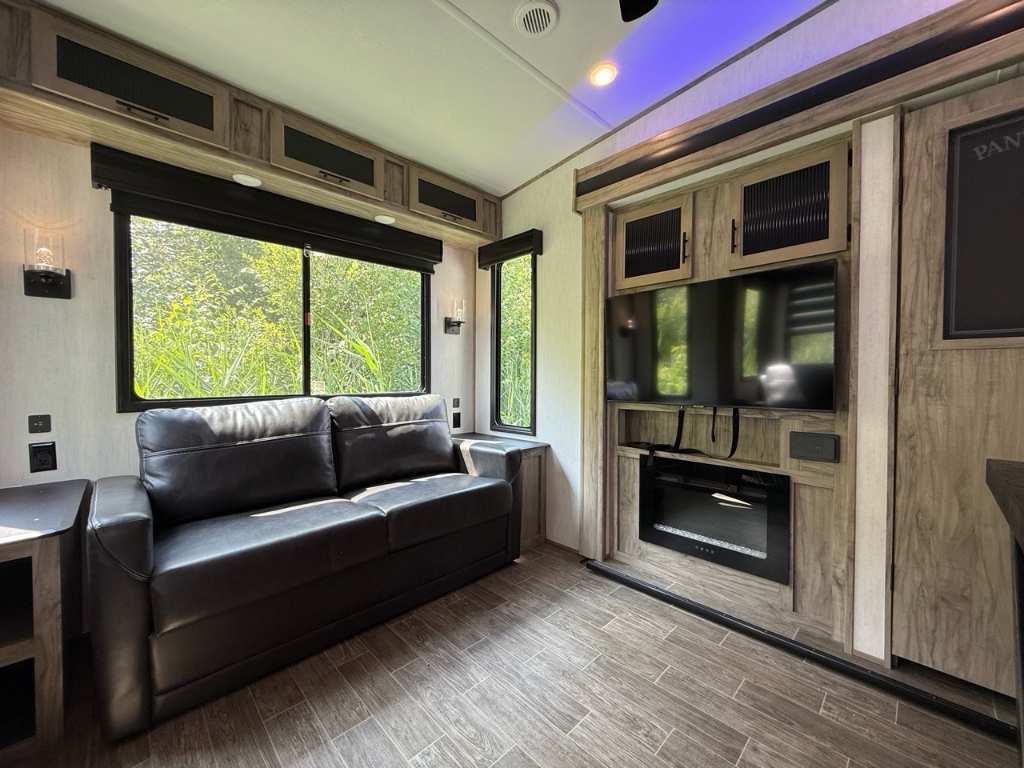 Forest River Cherokee Arctic Wolf 3880 2021Fifht Wheel – Forest River 3380 Cherokee Artic Wolf 2021 - Le Forest River Cherokee Arctic Wolf 3880 Suite (2021) est une roulotte de luxe conçue pour offrir un maximum de confort, d’espace et d’autonomie lors de vos escapades en nature. Voici ses 5 points forts à retenir : Dimensions & Capacités : • Longueur totale : 43.17 pieds • Poids à sec : 10 678 lbs • Réservoir d’eau douce : 49 gal • Réservoirs d’eaux usées : 105 gal • Couchages : Jusqu’à 8 personnes 5 caractéristiques principales : • Très grand et spacieux - Ce VR est très grand, avec plusieurs sections qui s’ouvrent sur les côtés pour offrir encore plus d’espace à l’intérieur. On s’y sent comme dans un petit appartement. • Confort pour toute la famille - Il peut accueillir jusqu’à 8 personnes grâce à un grand lit, des lits superposés et un canapé qui se transforme en lit. Parfait pour une famille ou un groupe d’amis. • Ambiance chaleureuse - À l’intérieur, on retrouve une cuisine avec un îlot central, un foyer électrique pour une belle ambiance, et des fauteuils confortables avec chauffe et massage. • Bien équipé pour toutes les saisons - Que ce soit l’hiver ou l’été, il est bien isolé, chauffé et climatisé pour rester confortable toute l’année. • Autonome pour le camping - Il est équipé de réservoirs d’eau et de bonbonnes de propane, ce qui permet de camper plusieurs jours sans avoir besoin de se brancher tout de suite. En résumé, ce modèle est idéal pour ceux qui recherchent un VR spacieux, confortable et bien équipé, que ce soit pour de courts séjours ou des aventures prolongées. Il combine praticité, confort et ambiance chaleureuse pour des souvenirs inoubliables en famille ou entre amis. *** Prendre note que les photos et les options décrites peuvent différées *** Toute l'équipe de Centre du VR est fière de vous présenter le plus vaste inventaire de véhicules récréatifs neufs et d'occasions à vendre au Québec. Vous y trouverez notamment les marques Columbus, Rockwood, Impression, Kodiak, Coleman, Cruiser RV, Flagstaff, E-Pro, Springdale, Sunset Trail, Cougar, Chaparral, Bontrager Outdoors, motorisés Axis, Hurricane, Outlaw, Coachmen Cross Trail, Prism, Echelon, Fleetwood, Four winds, Compass, Beyond, Nova et Pixel. Remorques N&N, Apogée et Armorteck sont aussi disponibles. En inventaire pour vous, la série de génératrices Ducar. Vous avez un coup de coeur ? Envoyez-nous une demande d'information. Financement sur place. N'oubliez pas également que rien ne vaut une visite du modèle qui vous intéresse pour vous aider à prendre une décision éclairée. Passez donc nous voir afin de jeter un coup d'oeil plus détaillé à nos caravanes et caravanes à sellettes neuves.