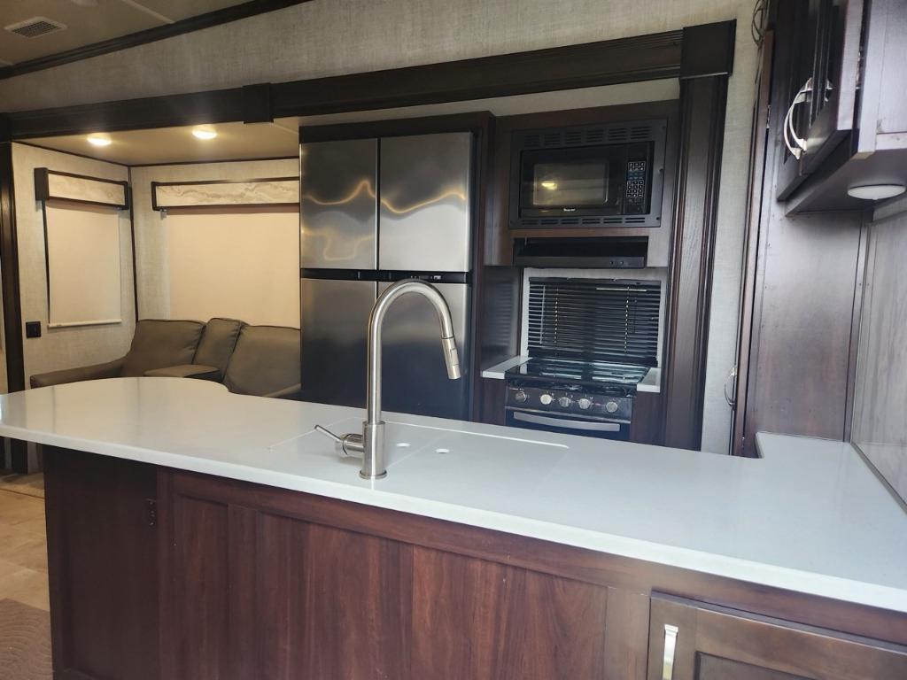 FOREST RIVER columbus 298rlw 2020 Longueur 29' 0'' Largeur 8' 0''Dort 4 Capacité en eau (douce) 75 gal Capacité en eau (gris) 71 gal Climatiseurs 2 Spécifications du climatiseur 15 000 et 13 500 BTU Coulissantes 3 Poids sec 11 859 livres # Essieux 2. Hauteur 14' 0''. Centre du VR : Votre expert en véhicules récréatifs au Québec Découvrez le plus vaste inventaire de VR neufs et d'occasion au meilleur prix. Que vous cherchiez une roulotte, une caravane à sellette (fifth wheel), une caravane-portée, un motorisé ou une remorque, notre équipe vous propose les plus grandes marques : Roulottes et Fifth Wheels : Rockwood, Flagstaff, Cougar, Springdale, Sunset Trail, Chaparral, Columbus, Impression, Kodiak, Coleman, E-Pro, Cruiser RV. Motorisés (Classe A, B, C) : Axis, Hurricane, Fleetwood, Four Winds, Coachmen Cross Trail, Prism, Echelon, Outlaw, Beyond, Nova. Remorques et Équipements : NN, Apogée, Armorteck et génératrices Ducar ou Cummins. Bien plus que de la vente : Un service complet Département de pièces et boutique : Un inventaire massif de pièces de remplacement et d'accessoires de camping pour améliorer votre confort. Service et réparation : Un centre de service spécialisé pour l'entretien et la réparation de vos unités, assuré par des techniciens experts. Financement : Profitez de nos solutions de financement avantageuses directement sur place. Un modèle vous intéresse ou vous avez besoin d'un entretien ? Contactez-nous pour une demande d'information ou passez nous voir en succursale pour une visite ! Note : Les photos et options peuvent différer de la réalité.
