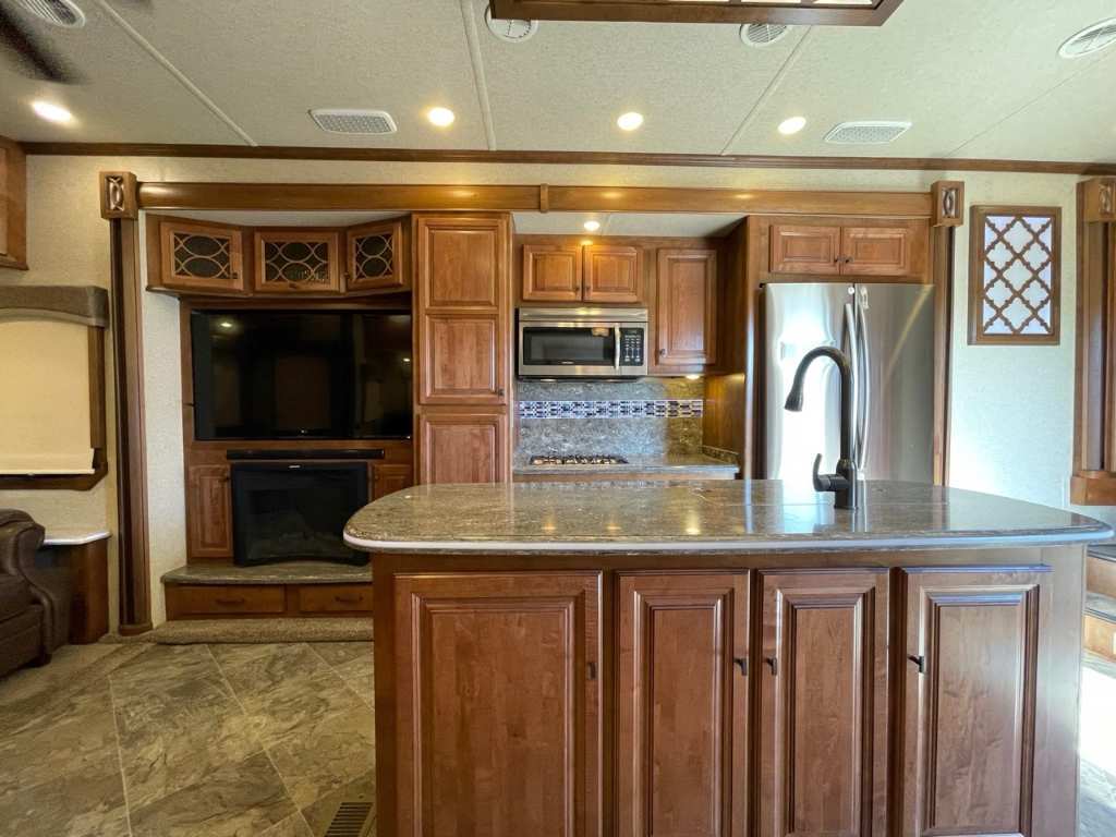 HEARTLAND OSHKO 2018 Heartland Landmark Oshkosk 2018 Belle grande Fifth Wheel Landmark Oshkosk 2018 Elle mesure 42.8'' et pèse 14643 LBS Elle possède une chambre des maîtres avec lit queen, une grande cuisine avec table et 4 chaises, cuisinière 4 brûleurs, fourneau, hotte, micro-onde et réfrigérateur résidentiel. Canapé théâtre, canapé-lit, téléviseur et foyer électrique au salon. Salle de bain complète avec douche, toilette et vanité. Extérieur Fullpaint en fibre de verre avec auvent rétractable électrique, réservoir d'eau douce de 80 gal., réservoirs d'eaux usés d'une capacité de 113.5 gal. et réservoir de propane. Centre du VR : Votre expert en véhicules récréatifs au Québec Découvrez le plus vaste inventaire de VR neufs et d'occasion au meilleur prix. Que vous cherchiez une roulotte, une caravane à sellette (fifth wheel), une caravane-portée, un motorisé ou une remorque, notre équipe vous propose les plus grandes marques : Roulottes et Fifth Wheels : Rockwood, Flagstaff, Cougar, Springdale, Sunset Trail, Chaparral, Columbus, Impression, Kodiak, Coleman, E-Pro, Cruiser RV. Motorisés (Classe A, B, C) : Axis, Hurricane, Fleetwood, Four Winds, Coachmen Cross Trail, Prism, Echelon, Outlaw, Beyond, Nova. Remorques et Équipements : NN, Apogée, Armorteck et génératrices Ducar ou Cummins. Bien plus que de la vente : Un service complet Département de pièces et boutique : Un inventaire massif de pièces de remplacement et d'accessoires de camping pour améliorer votre confort. Service et réparation : Un centre de service spécialisé pour l'entretien et la réparation de vos unités, assuré par des techniciens experts. Financement : Profitez de nos solutions de financement avantageuses directement sur place. Un modèle vous intéresse ou vous avez besoin d'un entretien ? Contactez-nous pour une demande d'information ou passez nous voir en succursale pour une visite ! Note : Les photos et options peuvent différer de la réalité.