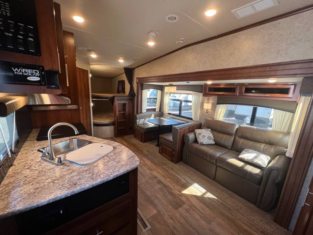 JAY FLIGHT EAGLE 265BHS 2016Longueur 31,2 pi (374 po) Largeur 8 pi (96 po) Hauteur 12,5 pi (150 po) Hauteur intérieure 6,28 pi (75,3 po) Poids Poids sec 7 280 livres Capacité de charge utile 2 670 livres Capacité de remorquage 3 000 livres PNBV 9 950 livres Poids de l'attelage 1 430 livres Réservoirs de rétention Nombre de réservoirs d'eau douce 1 Capacité totale du réservoir d'eau douce 42,0 gal. Nombre de réservoirs de rétention d'eaux grises 1 Capacité totale du réservoir d'eaux grises 32,5 gal.Longueur de l'auvent 16 pi (192 po) électrique . Nombre de réservoirs de rétention des eaux noires 1 Capacité totale du réservoir d'eaux noires 32,5 gal. Réservoir(s) de propane Nombre de réservoirs de propane 2 Capacité totale du réservoir de propane 14,2 gal. Capacité totale du réservoir de propane 60 livres. Mode d'alimentation du réfrigérateur Électrique / Propane. Nombre maximal de sommeils 10. *** Prendre note que les photos et les options décrites peuvent différées *** Toute l'équipe de Centre du VR est fière de vous présenter le plus vaste inventaire de véhicules récréatifs neufs et d'occasions à vendre au Québec. Vous y trouverez notamment les marques Columbus, Rockwood, Impression, Kodiak, Coleman, Cruiser RV, Flagstaff, E-Pro, Springdale, Sunset Trail, Cougar, Chaparral, Bontrager Outdoors, motorisés Axis, Hurricane, Outlaw, Coachmen Cross Trail, Prism, Echelon, Fleetwood, Four winds, Compass, Beyond, Nova et Pixel. Remorques N&N, Apogée et Armorteck sont aussi disponibles. En inventaire pour vous, la série de génératrices Ducar. Vous avez un coup de coeur ? Envoyez-nous une demande d'information. Financement sur place. N'oubliez pas également que rien ne vaut une visite du modèle qui vous intéresse pour vous aider à prendre une décision éclairée. Passez donc nous voir afin de jeter un coup d'oeil plus détaillé à nos caravanes et caravanes à sellettes neuves.