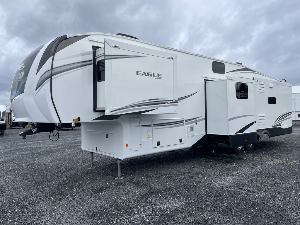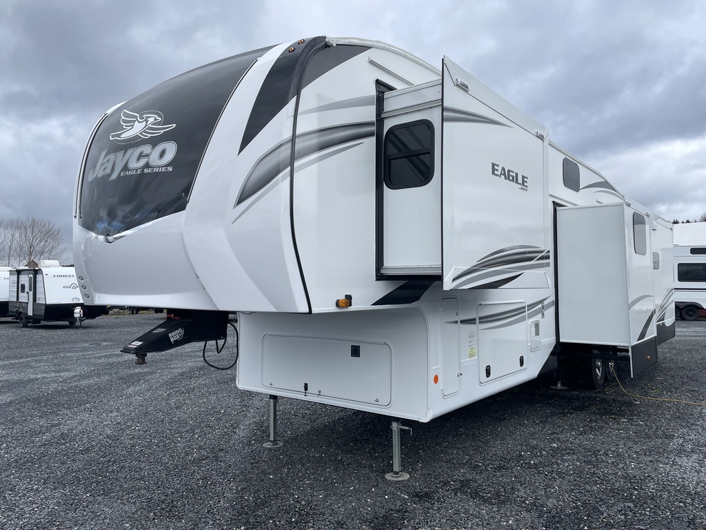 CONDITION EXCEPTIONNELLE!! FIFTHWHEEL JAYCO EAGLE 355MBQS 2022, JACK AUTO NIVELLANTS, 35 PIEDS DE PLANCHER, LONGUEUR HORS TOUT DE 42 PIEDS, 4 EXTENSIONS, ROULOTTE POUVANT ACCUEILLIR JUSQU'À 7 PERSONNES POUR COUCHER, POIDS DE 13 250 LBS, ÉCHELLE ARRIÈRE, 2 AUVENTS ÉLECTRIQUES, LIT DE LA CHAMBRE DES MAÎTRES DE 80'' X 72'', DIVAN LIT DE 69'' X 59'', CHAMBRE FERMÉE POUR ENFANTS AVEC DIVAN LIT DE 69'' X 44'' ET BUNK BED DE 60'' X 28'', ESPACES DE RANGEMENT RENDANT L'HABITACLE TRÈS FONCTIONNEL TOUT EN GARDANT LES COMMODITÉS SUIVANTES; GRAND FRIGO À 4 PORTES AVEC CONGÉLATEUR FONCTIONNANT AU PROPANE, RADIO, MICRO-ONDES, FOUR AU PROPANE À 3 RONDS, 2 AIRS CLIMATISÉS, CHAUFFE-EAU, CHAUFFAGE, FOYER, TÉLÉ ET ENCORE PLUS! TRÈS BELLE ROULOTTE AVEC BEAUCOUP DE RANGEMENT! COUP DE COEUR ASSURÉ! VOUS CHERCHEZ UNE BELLE ROULOTTE DE QUALITÉ AU MEILLEUR PRIX ALORS, NOUS AVONS CE QU'IL VOUS FAUT. CELLE-CI EST LA PLUS BELLE DU MARCHÉ. ROULOTTE VENDU INSPECTÉE ET GARANTIE. PASSEZ NOUS VOIR AU 174 ROUTE DU PRÉSIDENT KENNEDY, BEAUCEVILLE, G5X 1P4, À SEULEMENT 40 MINUTES DES PONTS DE QUÉBEC. LIVRAISON DISPONIBLE PARTOUT AU QUÉBEC! PROFITEZ DE NOTRE FINANCEMENT. POUR PLUS D'INFOS, SANS FRAIS 1-888-799-0874, BUREAU 418-774-5066, AU PLAISIR DE VOUS SERVIR ET À BIENTÔT! TOUJOURS LES MEILLEURS PRIX DU MARCHÉ WWW.AUTOMAGUIRE.COM *** NOUVEAUTÉS CHAQUE SEMAINE ***