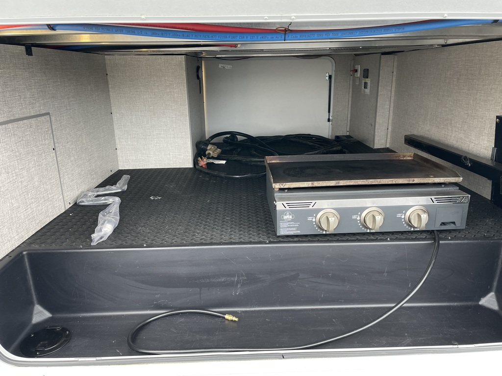 Options : Jantes aluminium, Réservoir de propane, Échelle, Douche, Toilette, Canapé-lit, Prise électrique, Téléviseur, Chaine stéréo, Prise cable, Micro-onde, Four, Hotte, Fourneau, Auvent, Chauffe-eau