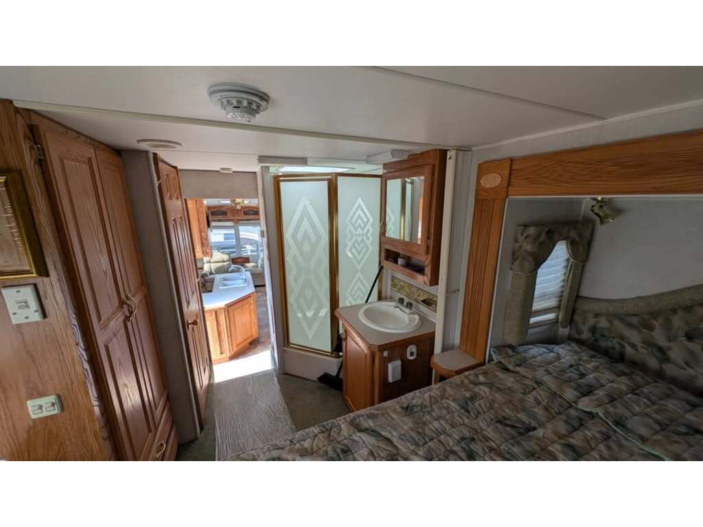 Options : Réservoir de propane, Lucarne, Douche, Toilette, Lit queen-size, Détecteur LPG/CO2, Téléviseur, Chaine stéréo, Micro-onde, Cuisinière, Four, Auvent, Chauffe-eau