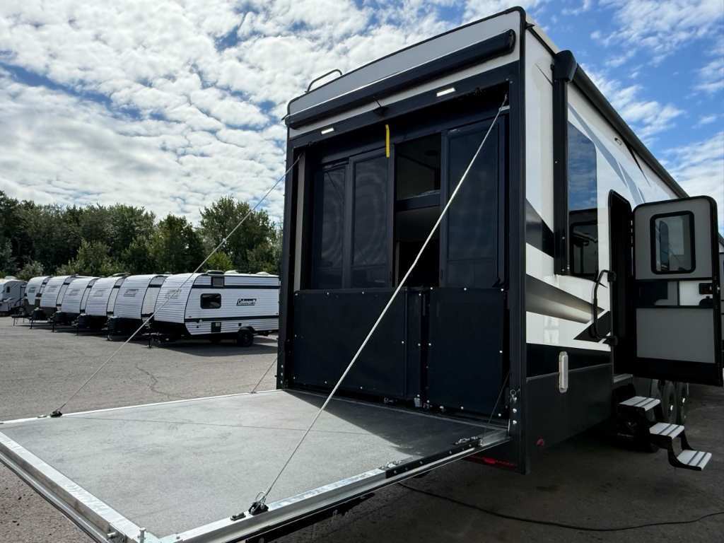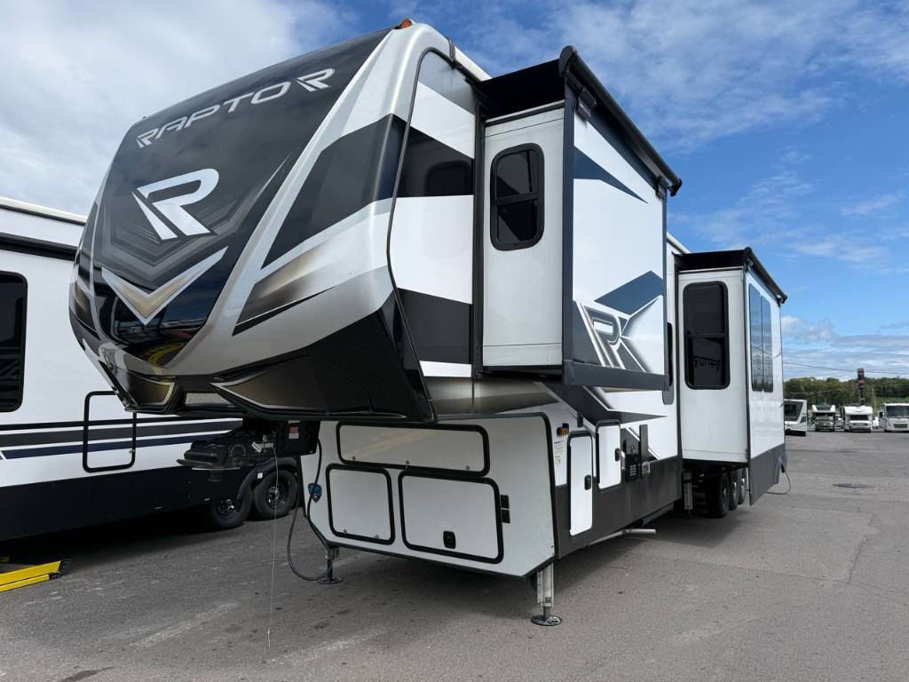 Raptor Raptor 424 CARGO 2024Fifth Wheel – Keystone 2024 – Raptor 424 - Le Keystone Raptor 424 (2024) est conçu pour les amateurs d’aventure avec beaucoup d’espace et de confort. Dimensions et capacités : • Longueur : 44.5 pieds • Poids à sec : 15 507 lbs • Réservoir d’eau douce : 94 gal • Réservoirs d’eaux usées : 164 gal • Couchages : Jusqu’à 7 personnes 5 caractéristiques principales : • Il dispose d’un garage de 13 pieds pour transporter motos, VTT ou vélos. • L’extérieur comprend deux auvents, un système hydraulique de stabilisation et un espace de carburant pour vos véhicules. • L’intérieur est spacieux avec un salon confortable, une cuisine complète et un foyer électrique. • La chambre principale comprend un lit king et de nombreux rangements. • Deux salles de bain et plusieurs zones de couchage permettent d'accueillir jusqu’à 7 personnes. En bref, le Raptor 424 est parfait pour voyager avec tout votre équipement, sans sacrifier le confort. *** Prendre note que les photos et les options décrites peuvent différées *** Toute l'équipe de Centre du VR est fière de vous présenter le plus vaste inventaire de véhicules récréatifs neufs et d'occasions à vendre au Québec. Vous y trouverez notamment les marques Columbus, Rockwood, Impression, Kodiak, Coleman, Cruiser RV, Flagstaff, E-Pro, Springdale, Sunset Trail, Cougar, Chaparral, Bontrager Outdoors, motorisés Axis, Hurricane, Outlaw, Coachmen Cross Trail, Prism, Echelon, Fleetwood, Four winds, Compass, Beyond, Nova et Pixel. Remorques N&N, Apogée et Armorteck sont aussi disponibles. En inventaire pour vous, la série de génératrices Ducar. Vous avez un coup de coeur ? Envoyez-nous une demande d'information. Financement sur place. N'oubliez pas également que rien ne vaut une visite du modèle qui vous intéresse pour vous aider à prendre une décision éclairée. Passez donc nous voir afin de jeter un coup d'oeil plus détaillé à nos caravanes et caravanes à sellettes neuves.