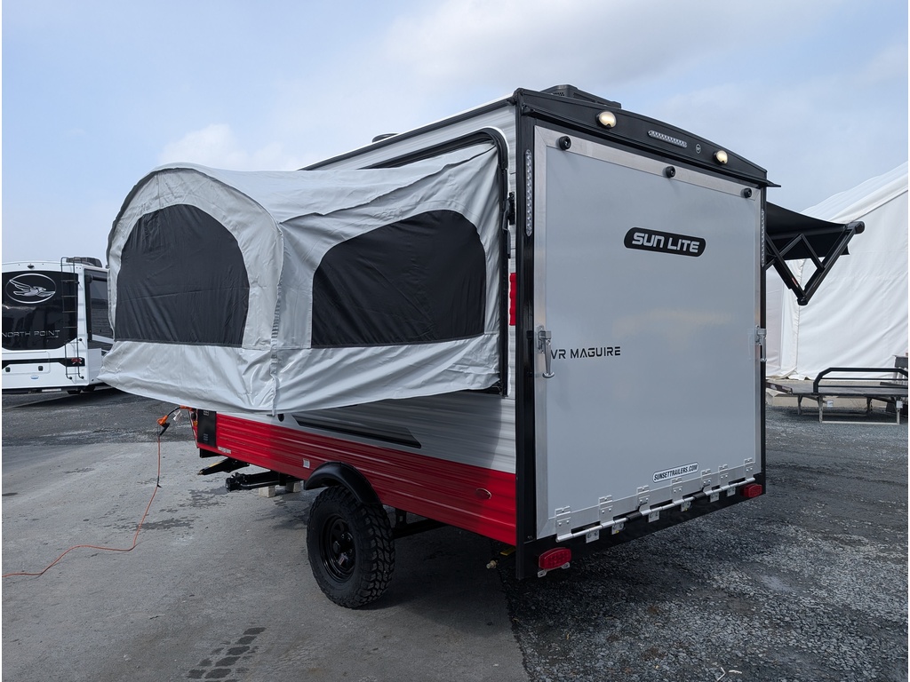 SUN LITE 14TH 2026 PAR SUNSET PARK & RV Roulotte cargo hybride, très polyvalente, elle offre les même commodités que celles pleines grandeurs mais avec un poids beaucoup plus léger Description: ?Poids: 2630 lbs ?Longueur hors tout: 16 pieds 2 pouces ?Hauteur intérieur: 6 pieds 6 pouces ? Ouverture porte cargo: 74x88 ?Peut accueillir jusqu'à 3 personnes à coucher ?Cuisinière à 2 brûleurs ?Réfrigérateur électrique 12 volt ?Auvent extérieur de 8 pieds ?Petit lit dans la section tente: 78x48 ?Lit 74x54 ?Micro onde ?Air climatisé ?Chauffage ?Haut Parleur bluetooth ?Panneau solaire 100 Watt ET PLUS ENCORE! TRÈS BEAU CAMPEUR AVEC BEAUCOUP DE RANGEMENT! VENDU INSPECTÉ ET GARANTI. À SEULEMENT 40 MINUTES DES PONTS DE QUÉBEC. LIVRAISON DISPONIBLE PARTOUT AU QUÉBEC! PROFITEZ DE NOTRE FINANCEMENT FACILE ET RAPIDE. POUR PLUS D'INFOS, WWW.VRMAGUIRE.COM, SANS FRAIS 1-888-799-0874, BUREAU 418-774-5066, CELL OU MESSAGE TEXTE KEVIN 418-386-0025, AU PLAISIR DE VOUS SERVIR ET À BIENTÔT! **TOUJOURS LES MEILLEURS PRIX DU MARCHÉ**