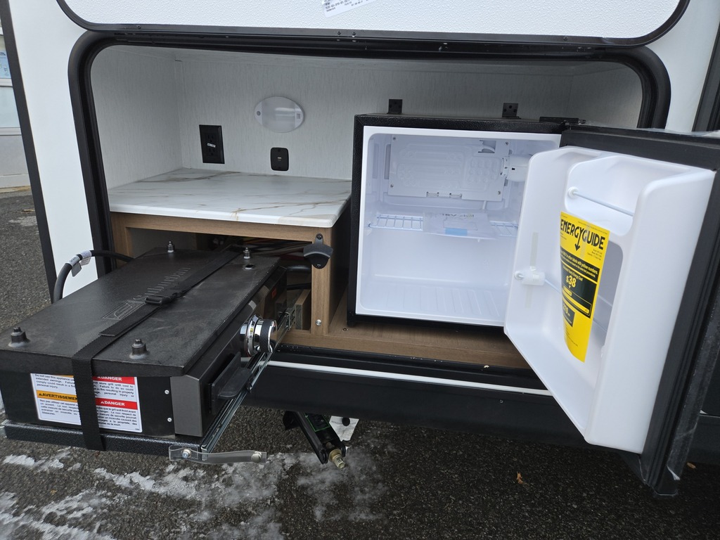Options : Convertisseur de courant continu, Réservoir de propane, Climatiseur au plafond, Ventilateur au plafond, Vérin stabilisateur, Roue de secours, Douche extérieure, Douche, Toilette, Lit queen-size, Lits superposés, Prise électrique, Détecteur LPG/CO2, Prise cable, Four à convection, Micro-onde, Cuisinière, Auvent, Chauffe-eau à allumage direct