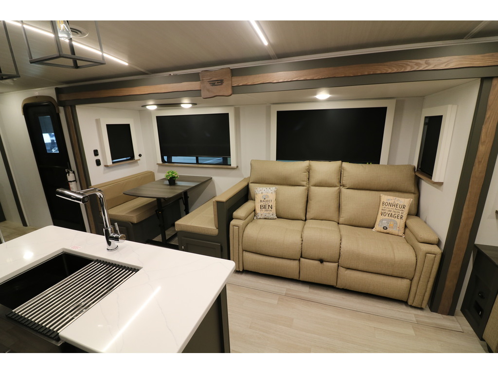 RÉSERVEZ LE VÔTRE !!!!! BULLET 310RES 2026 Roulotte pour couple avec un poids de 8192 livres INTÉRIEUR: - Cuisine avec îlot central , cuisinière avec dessus vitré, mico-ondes air fryer-convection. - Belle banquette double - 2 fauteuils inclinables devant le foyer électrique et le téléviseur. - Sofa-lit arrière entouré d'une belle fenestration pour donner une belle clarté - Beaucoup de rangement dans la cuisine - Chambre avant avec très grand lit, grand garde-robe en miroir, armoires de rangement avec possibilité d'avoir laveuse-sécheuse, rangement sous le lit - Salle de bain avec douche et belle vanité EXTÉRIEUR: - Marches ultra robustes - Coffres de rangement - Jack électrique - Stabilisateurs électrique - échelle arrière pour accéder au toit plus facilement photos à titre indicatif