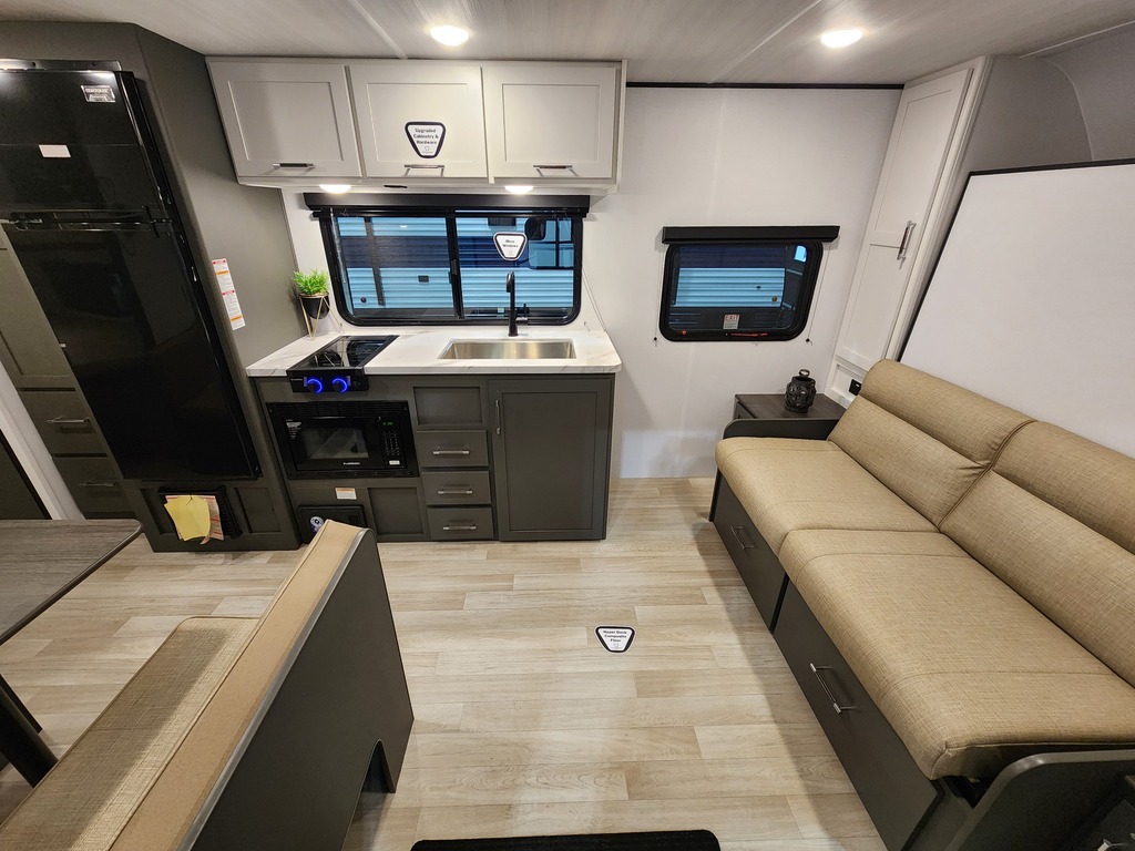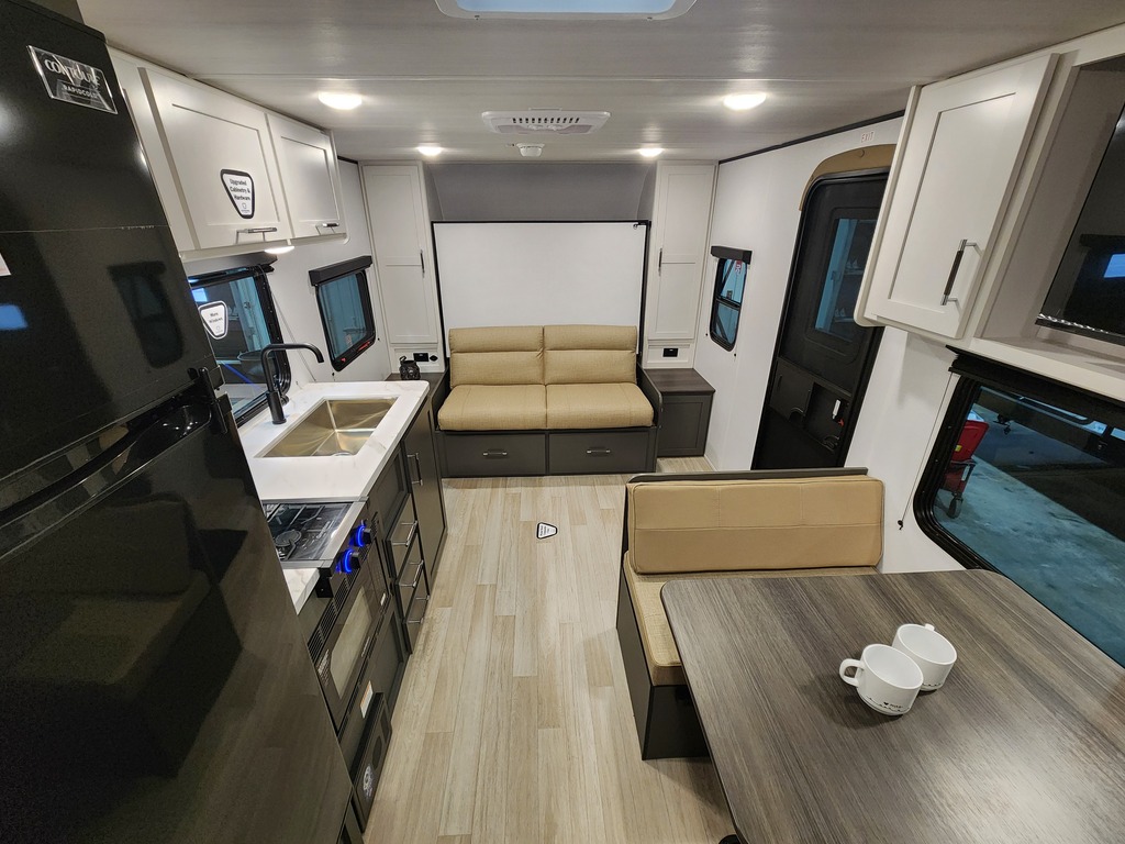 NOUVEAU MODÈLE! ROULOTTE FAMILIALE BULLET 21BHC 2026 Elle pèse seulement 4200 lbs, peut coucher jusqu'à 7 personnes! INTÉRIEUR: - Cuisine entièrement équipée - Grand réfrigérateur - Télévision incluse - Lits superposés doubles avec rangement caché - Salle de bain entièrement équipée - Chambre avant avec lit murphy - Beaucoup de rangement EXTÉRIEUR: - Auvent électrique avec lumière LED - Vérins électriques - Porte cargo à l'arrière sous les lits superposés - Coffre avant pleine longueur - Marches solides *Photos à titre indicatif*