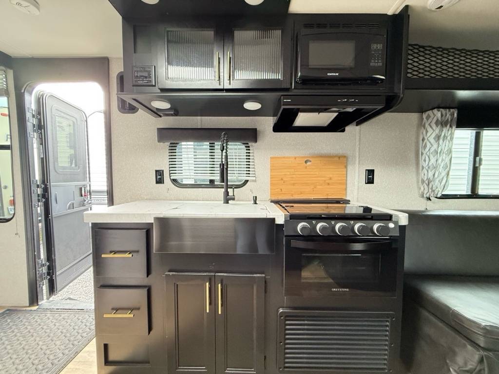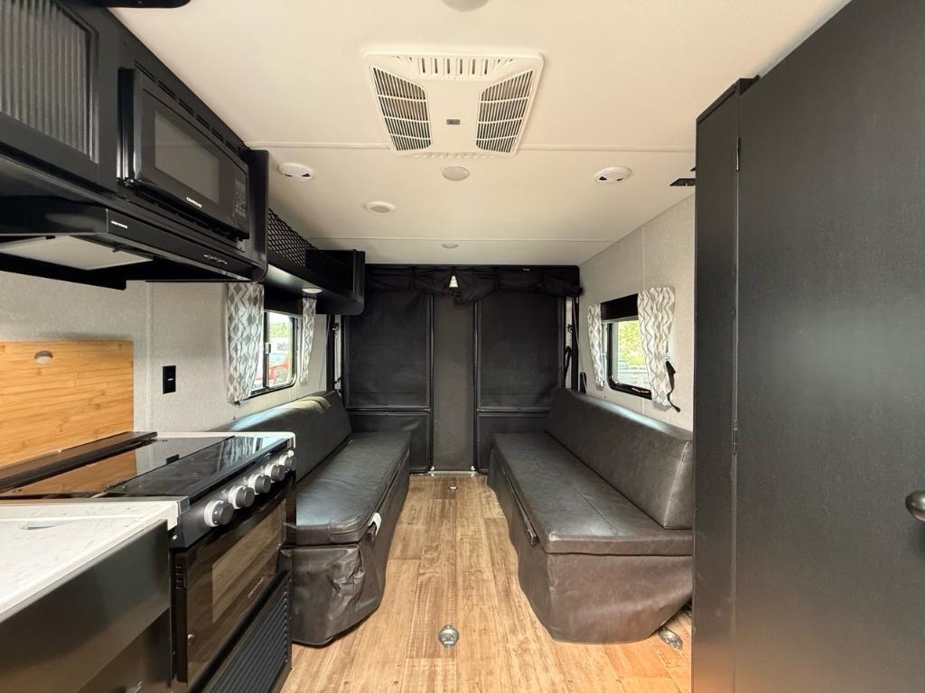 Cherokee Grey Wolf 22RR CARGO 2022Roulotte Grey Wolf 22R 2022 – L’équilibre parfait entre fonctionnalité et détente, pour voyager léger et bien équipé. Dimensions & Poids : • Longueur : 31.42 pi • Poids à sec : 4 871 lbs Capacités : • Résevoir d’eau fraîche : 40 gal • Réservoirs d’eaux usées (grises et noires) : 66 gal Caractéristiques principales : • Format compact, maniable – 28,8?pi de long avec un espace suffisant sans compromettre l’accès aux terrains de camping? • Garage de 7?pi avec rampe arrière – Parfait pour charger VTT, motos ou vélos, avec un plancher en vinyle renforcé? • Couchage pour 4 personnes – Lit queen en chambre avant et sofa convertible dans le salon? • Cuisine bien équipée et salon arrière – Plaque 3?brûleurs, réfrigérateur pleine grandeur, évier, et double sofa en vinyle pour se détendre? • Équipements modernes intégrés – Climatisation 15?000?BTU, chauffe-eau 6?gal, enceintes int/ext, Bluetooth/Wi Fi, auvent rétractable? Pensé pour les amateurs de VTT, de motocross ou de vélo qui veulent un espace pratique et un intérieur chaleureux. *** Prendre note que les photos et les options décrites peuvent différées *** Toute l'équipe de Centre du VR est fière de vous présenter le plus vaste inventaire de véhicules récréatifs neufs et d'occasions à vendre au Québec. Vous y trouverez notamment les marques Columbus, Rockwood, Impression, Kodiak, Coleman, Cruiser RV, Flagstaff, E-Pro, Springdale, Sunset Trail, Cougar, Chaparral, Bontrager Outdoors, motorisés Axis, Hurricane, Outlaw, Coachmen Cross Trail, Prism, Echelon, Fleetwood, Four winds, Compass, Beyond, Nova et Pixel. Remorques N&N, Apogée et Armorteck sont aussi disponibles. En inventaire pour vous, la série de génératrices Ducar. Vous avez un coup de coeur ? Envoyez-nous une demande d'information. Financement sur place. N'oubliez pas également que rien ne vaut une visite du modèle qui vous intéresse pour vous aider à prendre une décision éclairée. Passez donc nous voir afin de jeter un coup d'oeil plus détaillé à nos caravanes et caravanes à sellettes neuves.