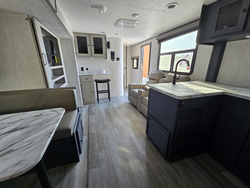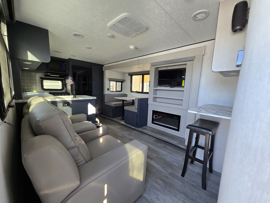 La Coachmen Apex 264RKS 2025 est une roulotte spacieuse à deux essieux, idéale pour les couples recherchant confort et stabilité. Avec un poids d’environ 5 982 lb, elle offre un excellent équilibre sur la route. Son aménagement avec cuisine arrière (Rear Kitchen) propose beaucoup de comptoir et de rangement. Chambre fermée à l’avant pour plus d’intimité et foyer électrique pour une ambiance chaleureuse. Équipement complet : réfrigérateur 8 pi³, four avec fonction air fryer, climatiseur 15 000 BTU, système solaire 200W, prises USB et haut-parleur Bluetooth. Auvent électrique 18’, roues en aluminium et vitres teintées. Réservoir d’eau fraîche 50 gal et capacité eaux usées 70 gal pour une belle autonomie. Construction solide avec structure aluminium et murs Azdel laminés sous vide. Une roulotte 2025 confortable, stable et bien équipée, parfaite pour les escapades et les séjours prolongés.