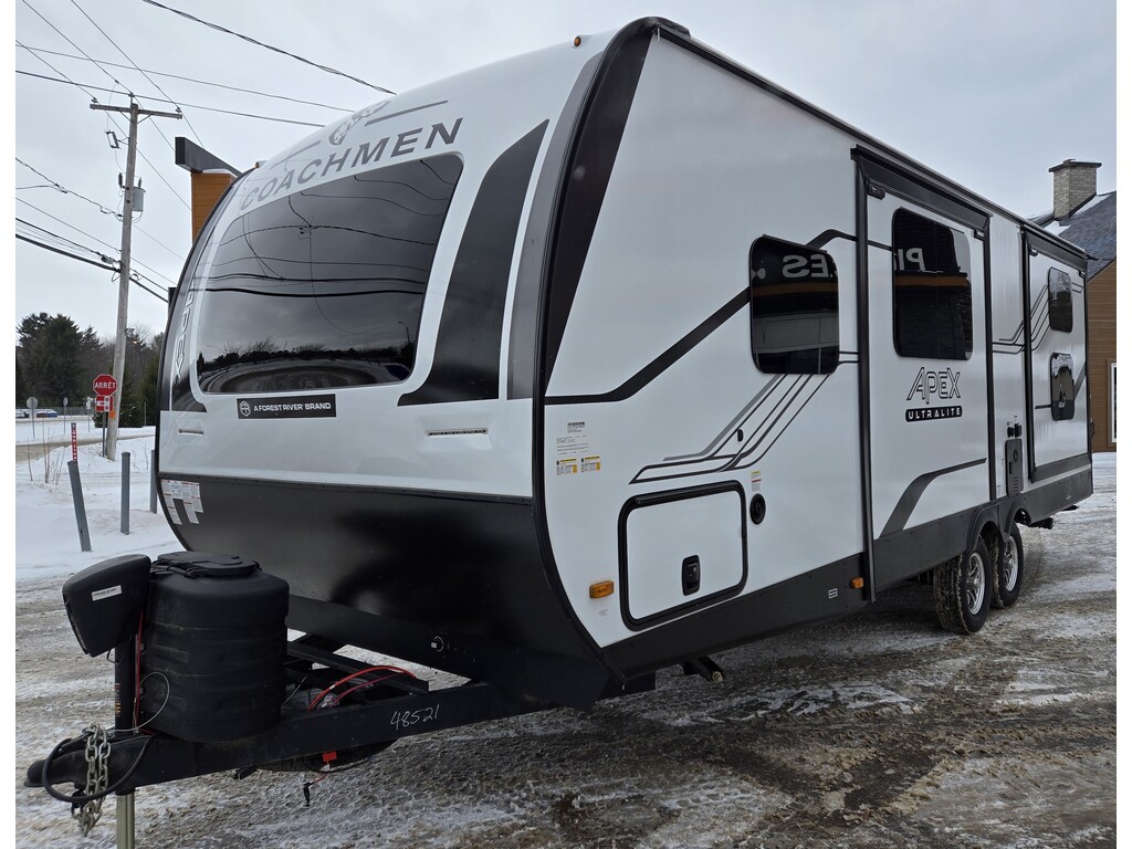 La Apex 241 BHS est un excellent choix familiale, lits superposés simples (chambre fermée), lit Queen, douche porte vitrée, 2 extensions pour plus d'espace, panneaux solaire 200watts, four air fryer. Cette roulotte répondra à tout vos besoins pour la petite famille. Construction en cage d'aluminium Toiture à fermes en aluminium laminé collé sous vide avec membrane d'étanchéité Dicor Crossflex Parois latérales et paroi arrière en fibre de verre Azdel double laminée collée sous vide Plancher à ossature en aluminium stratifié Cadre revêtu de poudre anticorrosion