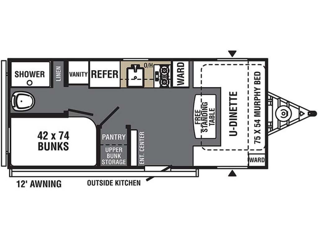 Options : Réservoir de propane, Climatiseur au plafond, Climatiseur conduit central, Vérin stabilisateur, Roue de secours, Douche extérieure, Lucarne, Douche, Toilette, Lit queen-size, Lit double, Lits superposés, Lit arrière, Prise électrique, Cric électrique, Détecteur LPG/CO2, Chaine stéréo, Prise cable, Antenne pour téléviseur, Micro-onde, Hotte, Fourneau, Auvent, Chauffe-eau, Lecteur DVD, Chauffe-eau à allumage direct