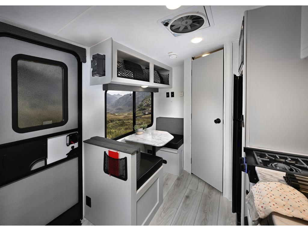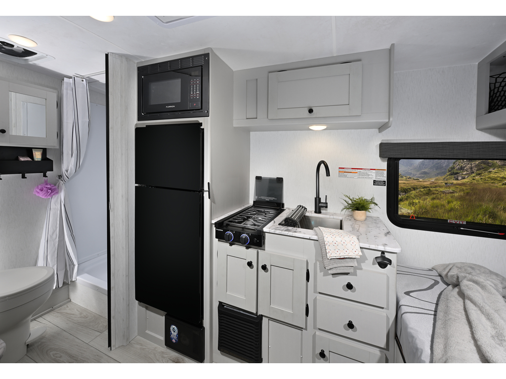 Murs Azdel, pneus Goodyear, chauffe eau sur demande Fogatti, panneau solaire 200 watts, heat pads 12v pour réservoirs eaux grises, noires et fraîche, haut parleur bluetooth, contrôleur de charge 30amp. détecteur de pression dans les pneus.