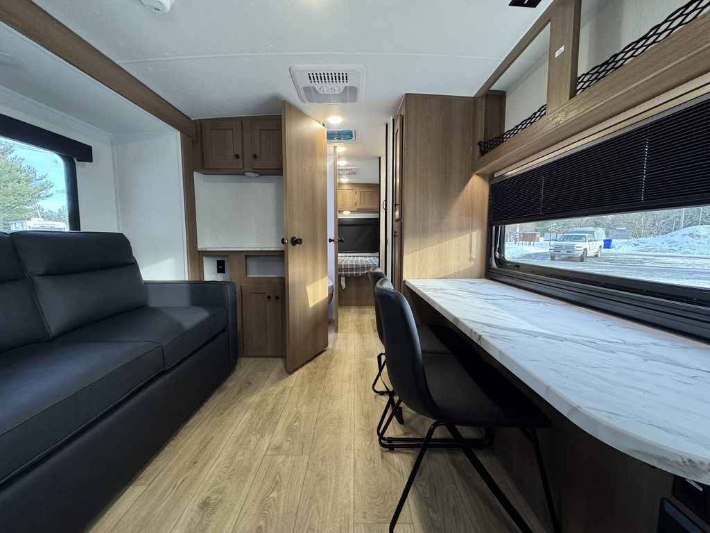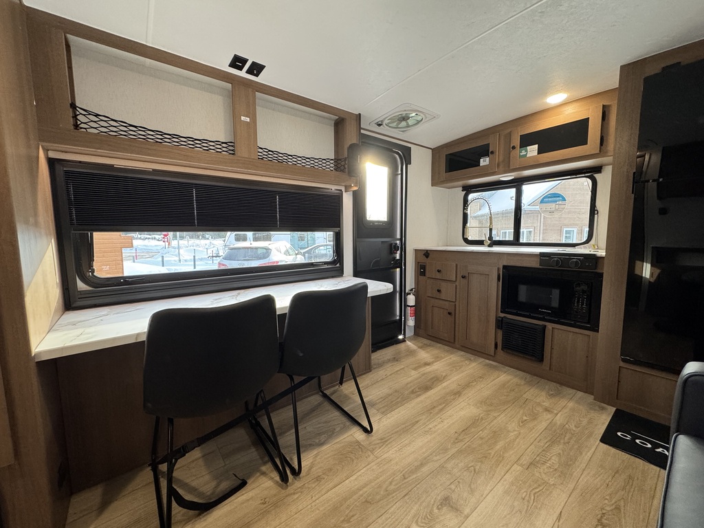 Effet WOW garanti ! Roulotte 2026 pour couple au design moderne et intelligent, avec lit Queen, comptoir lunch intérieur et comptoir extérieur pour profiter pleinement de chaque séjour. Équipement haut de gamme : réfrigérateur 12V 10 pi³, chauffe-eau instantané 48 000 BTU, douche extérieure chaude/froide, plaque 2 brûleurs encastrée, micro-ondes avec fonction air fryer et évier inox avec couvercle maximisant l’espace de travail. Idéale pour le camping autonome grâce au système solaire 400W (contrôleur 30A) et au réservoir d’eau fraîche de 52 gallons. Construction solide : structure complète en aluminium et murs Azdel laminés sous vide. Une roulotte moderne, autonome et prête à partir à l’aventure.