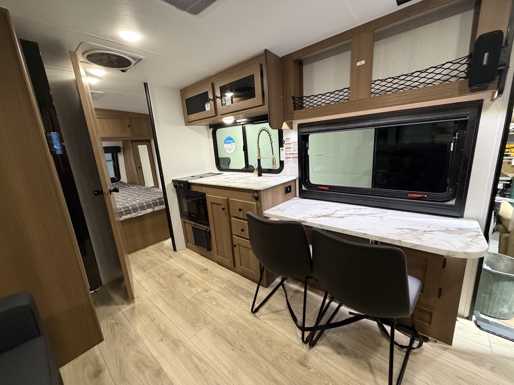 La Coachmen Apex 224RBS 2026 est une roulotte moderne et bien équipée, idéale pour les couples qui recherchent espace, confort et autonomie dans un format facile à remorquer. Son aménagement efficace avec grande salle de bain arrière et aire de vie ouverte crée un environnement agréable autant pour les escapades de fin de semaine que pour les séjours prolongés. Elle se démarque par un climatiseur de 15 000 BTU, un réfrigérateur 12 V de 10 pi³, un chauffe-eau instantané à la demande de 48 000 BTU ainsi qu’un micro-ondes avec fonction friteuse à air. Pour le camping autonome, elle est dotée d’un système solaire de 400 watts avec contrôleur de charge de 30 ampères, permettant de prolonger les aventures sans compromis sur le confort. L’expérience extérieure est tout aussi pratique grâce à une douche chaude/froide, un système de rinçage du réservoir noir et un haut-parleur Bluetooth Alpine Premium monté d’origine, parfait pour profiter pleinement du camping. Côté construction, elle repose sur une structure en cage d’aluminium et des parois en fibre de verre Azdel laminées sous vide, reconnues pour leur légèreté, leur durabilité et leur excellente résistance à l’humidité. Une roulotte 2026 complète, fiable et bien pensée, parfaite pour les voyageurs qui souhaitent partir l’esprit tranquille avec un modèle confortable, autonome et facile à utiliser.