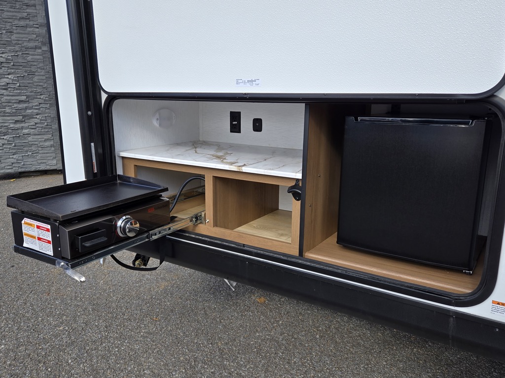 NOUVEAU MODÈLE 2026, Nouveau design, nouvelle couleur intérieure. Roulotte familiale avec murphy bed et lits doubles superposés. Comptoir extérieur avec télévision, cuisinette extérieure avec grill plancha et mini frigo. Frigo 10 pieds cubes ??. Elle est muni d'un puit de lumière au dessus du lit donnant une belle luminosité et une circulation d'air parfaite. Inclus: chauffe-eau sur demande, air climatisé, chauffage propane , panneau solaire 400 watts avec convertisseur de courant de 30 AMP, douche extérieure. FINANCEMENT DISPONIBLE SUR PLACE Construction en cage d'aluminium Toiture à fermes en aluminium laminé collé sous vide avec membrane d'étanchéité Dicor Crossflex Parois latérales et paroi arrière en fibre de verre Azdel double laminée collée sous vide Plancher à ossature en aluminium stratifié Cadre revêtu de poudre anticorrosion