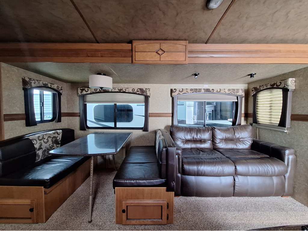 CrossRoads Rv Sunset Trail 26RB 2015Sunset Trail 26RB 2015 usagées. Elle mesure 30,17pi. et pèse 6 401 lbs. Cette unité peut accueillir jusqu'à six personnes au coucher, car elle possède un lit Queen, une dinette et un canapé-lit. La cuisine est complète avec fourneau, cuisinière trois brûleurs, hotte et micro-onde. Salle de bain avec douche, toilette et vanité. Extérieur en fibre de verre, avec auvent rétractable électrique, réservoir d'eau fraîche de 40 gal., d'eaux usées de 120 gal. Cuisinette extérieure complète. *** Prendre note que les photos et les options décrites peuvent différées *** Toute l'équipe de Centre du VR est fière de vous présenter le plus vaste inventaire de véhicules récréatifs neufs et d'occasions à vendre au Québec. Vous y trouverez notamment les marques Columbus, Rockwood, Impression, Kodiak, Coleman, Cruiser RV, Flagstaff, E-Pro, Springdale, Sunset Trail, Cougar, Chaparral, Bontrager Outdoors, motorisés Axis, Hurricane, Outlaw, Coachmen Cross Trail, Prism, Echelon, Fleetwood, Four winds, Compass, Beyond, Nova et Pixel. Remorques N&N, Apogée et Armorteck sont aussi disponibles. En inventaire pour vous, la série de génératrices Ducar. Vous avez un coup de coeur ? Envoyez-nous une demande d'information. Financement sur place. N'oubliez pas également que rien ne vaut une visite du modèle qui vous intéresse pour vous aider à prendre une décision éclairée. Passez donc nous voir afin de jeter un coup d'oeil plus détaillé à nos caravanes et caravanes à sellettes neuves.