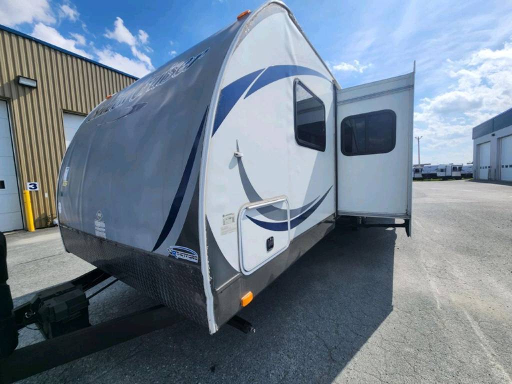 Paiement à partir de $/sem. + TX. 2014 Cruiser RV Shadow Cruiser 314TSB Superbe roulotte de 31 pieds - 6 662 lbs - Dinette en forme de U, 2 chambres fermées, 2 extensions dans la chambre des enfants, 4 lits superposés, un divan lit, un lit Queen - Plusieurs espaces de rangement - Radio- Réfrigérateur propane/électrique - Mags - Auvent électrique. Valeur du marché en parfaite condition de 20 000$, nous affichons dans notre section bricoleur par soucis de transparence avec rabais en conséquence. Toile d'auvent sera changée par une en bon état. Présence d'infiltration d'eau à quelques endroits, principalement l'avant et à l'arrière. Venez la voir par vous même, très belle roulotte pour le prix. Vendu tel quel sans garantie Contactez nos conseillers par téléphone, courriel ou texto ! Nous acceptons les échanges de tout genre et on s'occupe de votre financement sur place ! VR Thetford est votre spécialiste en véhicules récréatifs et de loisirs (VR, motorisés, roulottes, fifth wheel, remorques, VTT, côte-à-côte et motoneiges). Notre équipe saura vous guider dans votre choix de véhicules et d accessoires. Nous sommes concessionnaire Jayco, Passport, Flagstaff, Compass, Magnitude, Outlaw, Alcom, Remjco, Laroche, Talaria et Polaris ! Au plaisir de vous servir ! *Photos à titre indicatif. Certains accessoires et équipements pourraient être en sus* *Prix sujet à changement sans préavis, valider le prix auprès d'un conseiller*