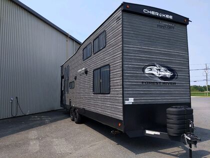 ROULOTTE DE PARC FOREST RIVER TIMBERWOLF 20OG 2025 neuf à vendre Timberwolf 20OG de Forest River La Timberwolf 20OG est une caravane de la série Mini Loft de Forest River, conçue pour offrir une expérience de camping confortable et moderne. Avec une longueur extérieure de 35 pieds 8 pouces, elle est compacte tout en offrant des aménagements spacieux, notamment un patio arrière confortable. Parmi ses caractéristiques notables, on trouve deux lits king-size, un lave-vaisselle, une combinaison lave-linge/sèche-linge et un réfrigérateur pleine grandeur. Caractéristiques principales : Poids à vide (UVW) : 8 294 lb Capacité de charge utile (CCC) : 2 981 lb Poids total autorisé en charge (GVWR) : 11 275 lb Poids sur la flèche : 1 075 lb Longueur extérieure : 35' 8'' Hauteur extérieure : 13' 6'' Largeur extérieure : 96'' Capacité du réservoir d'eau douce : 40 gallons Capacité du réservoir d'eaux grises : 40 gallons Capacité du réservoir d'eaux noires : 40 gallons Équipements standard : Ensemble d'appareils de cuisine améliorés Robinet de cuisine à ressort assisté de couleur noire mate Évier de style ferme résidentiel en acier inoxydable noir Plans de travail sans joints Douche extra-large avec enceinte complète Literie et couette de qualité supérieure Cheminée Cordon d'alimentation détachable Éclairage à bande LED Indicateurs de pression des pneus Technologie de cadre Power Gear Auvent électrique Grande poignée d'assistance pliante extérieure Marche exclusive Cherokee Stable Step avec palier surdimensionné Unité de climatisation centrale surdimensionnée avec fonction de refroidissement rapide Évier de cuisine résidentiel sous plan Membrane de toit sans joints avec réflectivité thermique Stations de charge USB-C Fenêtres de sécurité teintées réfléchissantes exclusives Solar Thermo Chauffe-eau instantané sans réservoir Ventilateur de grenier à haut rendement dans la salle de bain Stores occultants Douche extérieure avec eau chaude et froide Connexion rapide pour gril RV Skylight au-dessus de la douche Chauffe-réservoirs 12 volts Plancher en contreplaqué rainuré de 5/8'' Kit de rinçage du réservoir d'eaux noires Préparation pour laveuse/sécheuse Porte d'entrée à charnière à friction avec vitre et préparation pour store Lumière d'effroi Préparation pour échelle Support TV extérieur et connexions Deuxième unité de climatisation (lorsque disponible) Les photos et visites virtuelles et fiches produits sont à titre indicatif et sans inscription. Pour vous assurer de l'exactitude de toutes les caractéristiques et fonctionnalités du produit, veuillez vous référer à l'un de nos conseillers. Veuillez vous référer à l'un de nos conseillers de vente qualifiés. Ils seront ravis de vous aider à trouver le produit qui répondra le mieux à vos besoins.
