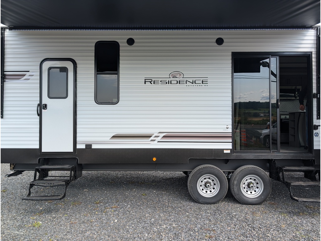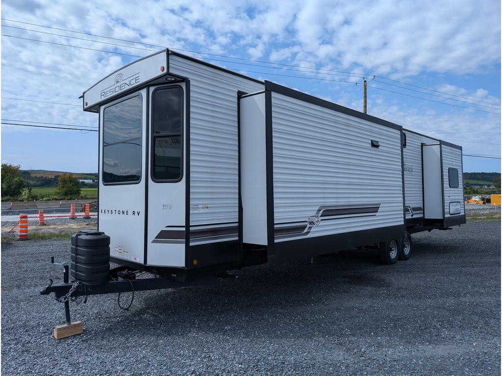 RÉSIDENCE 40 MKTS 2025 PAR KEYSTONE, IDÉALE POUR COUPLE! 3 EXTENSIONS, POIDS DE 11 955 LBS, 1 PORTE D'ENTRÉE ET 1 PORTE PATIO, ROULOTTE POUVANT ACCUEILLIR JUSQU'À 4 PERSONNES POUR COUCHER, 40 PIEDS DE PLANCHER, GRAND LIT AVEC CHAMBRE FERMÉ DE 80'' X 72'', TABLE AVEC 4 CHAISES, DIVAN LIT DE 70'' X 56'', 2 FAUTEUILS, ILÔT CENTRAL, TÉLÉ, FOYER DE LUXE, AUVENT ÉLECTRIQUE, ESPACE PRÊT POUR LAVEUSE SÉCHEUSE, ESPACE PRÊT POUR RECEVOIR UNE BALAYEUSE CENTRALE, ESPACES DE RANGEMENT RENDANT L'HABITACLE TRÈS FONCTIONNEL TOUT EN GARDANT LES COMMODITÉS SUIVANTES; TRÈS GRAND FRIGO DE MAISON AVEC CONGÉLATEUR FONCTIONNANT ÉLECTRIQUE, MICRO-ONDES, BRÛLEURS AU PROPANE À 3 RONDS, FOUR, AIR CLIMATISÉ, CHAUFFE-EAU, CHAUFFAGE ET ENCORE PLUS! TRÈS BELLE ROULOTTE AVEC BEAUCOUP DE RANGEMENT! COUP DE COEUR ASSURÉ! VOUS CHERCHEZ UNE BELLE ROULOTTE DE QUALITÉ AU MEILLEUR PRIX ALORS, NOUS AVONS CE QU'IL VOUS FAUT. CELLE-CI EST LA PLUS BELLE DU MARCHÉ. ROULOTTE VENDU INSPECTÉE ET GARANTIE. PASSEZ NOUS VOIR AU 174 ROUTE DU PRÉSIDENT KENNEDY, BEAUCEVILLE, G5X 1P4, À SEULEMENT 40 MINUTES DES PONTS DE QUÉBEC. LIVRAISON DISPONIBLE PARTOUT AU QUÉBEC! PROFITEZ DE NOTRE FINANCEMENT FACILE ET RAPIDE. POUR PLUS D'INFOS, SANS FRAIS 1-888-799-0874, BUREAU 418-774-5066, CELL OU MESSAGE TEXTE KEVIN 418-386-0025 AU PLAISIR DE VOUS SERVIR ET À BIENTÔT! TOUJOURS LES MEILLEURS PRIX DU MARCHÉ WWW.AUTOMAGUIRE.COM *** NOUVEAUTÉS CHAQUE SEMAINE ***