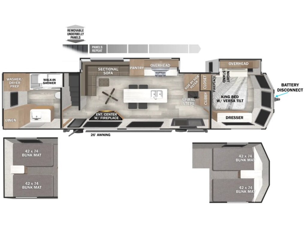 Paiement à partir de $/sem. + TX. 2025 Wildwood Lodge 42 view kit de départ - roulotte de parc luxueuse - 42 pi - 13 690 lb - Grande porte coulissante (patio), auvent de 26' avec éclairage LED - Aménagement résidentiel (Cuisine complète, îlot avec 4 places assis, appareil électroménager en acier inoxydable, foyer, laveuse sécheuse, canapé sectionnel en L) - lit king dans la chambre principale - 2 lofts superposé offrant espace de rangement ou de couchage avec lit double - douche spacieuse et plus encore! Contactez nos conseillers par téléphone, courriel ou texto ! Nous acceptons les échanges de tout genre et on s'occupe de votre financement sur place ! VR Thetford est votre spécialiste en véhicules récréatifs et de loisirs (VR, motorisés, roulottes, fifth wheel, remorques, VTT, côte-à-côte et motoneiges). Notre équipe saura vous guider dans votre choix de véhicules et d accessoires. Nous sommes concessionnaire Jayco, Passport, Flagstaff, Compass, Magnitude, Outlaw, Alcom, Idéal Cargo, Laroche, Talaria et Polaris ! Au plaisir de vous servir ! *Photos à titre indicatif. Certains accessoires et équipements pourraient être en sus* *Prix sujet à changement sans préavis, valider le prix auprès d'un conseiller*
