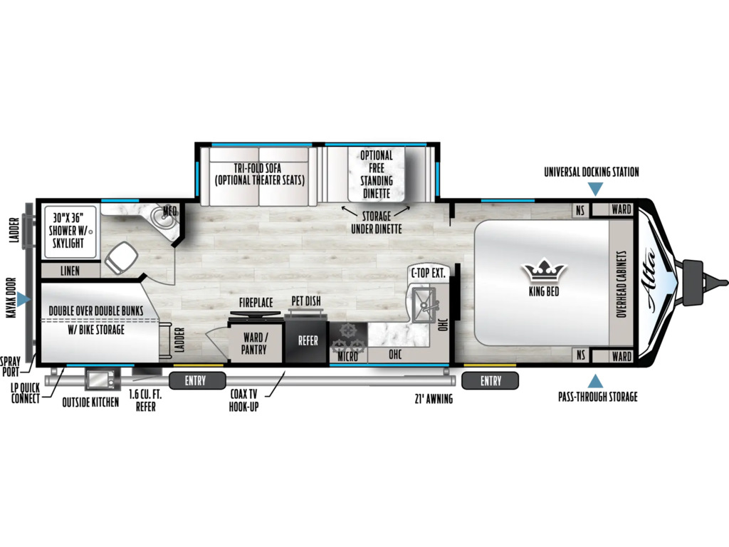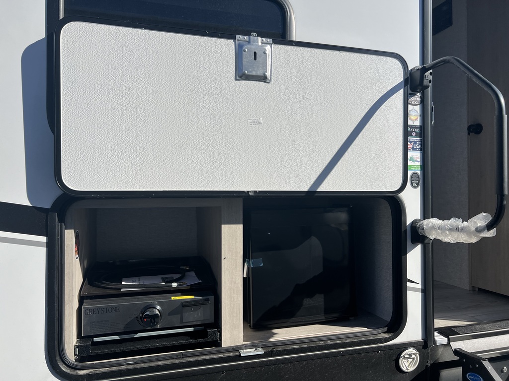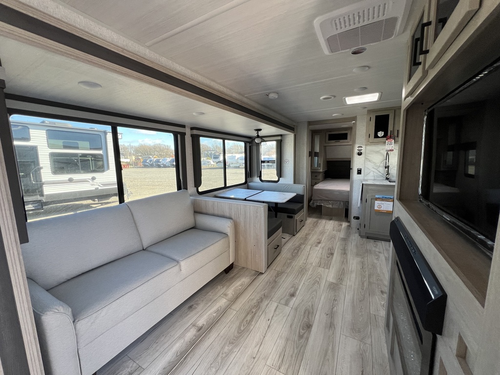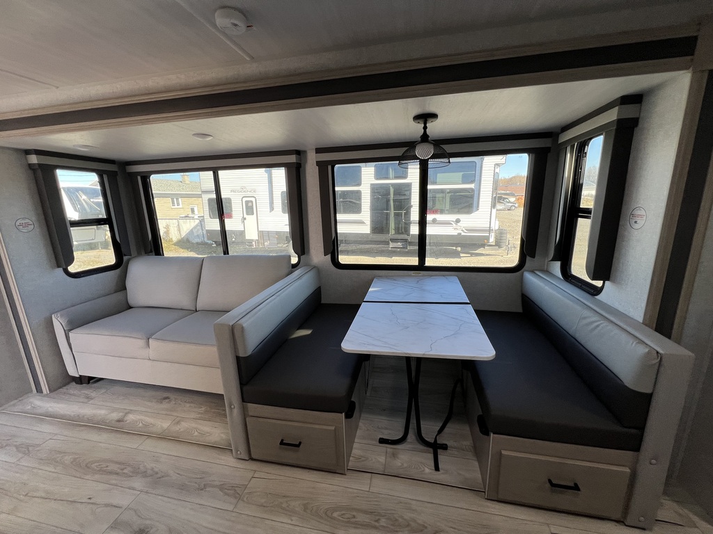 Magnifique roulotte Moderne et spacieuse Peut accueillir jusqu'à 10 personnes Chambre fermée avec lit king à l'avant Canapé-lit Dinette pouvant être convertie en lit supplémentaire Grande fenestration Espace de vie convivial Cuisine équipée Réfrigérateur et congélateur Micro-ondes Plaque de cuisson Salle de bain complète Beaucoup de rangement 2 portes donnent accès à l'intérieur Intéressé(e) ? Venez voir ! Rien de mieux qu'une visite en personne pour solidifier votre opinion. Chez Roulottes Turmel, notre équipe motivée et dévouée saura vous rassurer et vous aider dans vos recherches. Notre but est d'offrir le meilleur service-conseil relatif aux véhicules récréatifs ainsi qu'aux produits de qualité s'y rattachant. Nous saurons trouver ce qui vous conviendra pour rendre vos futures expériences de voyage et de camping inoubliables. *L'unité en stock pourrait légèrement différer des images présentées.