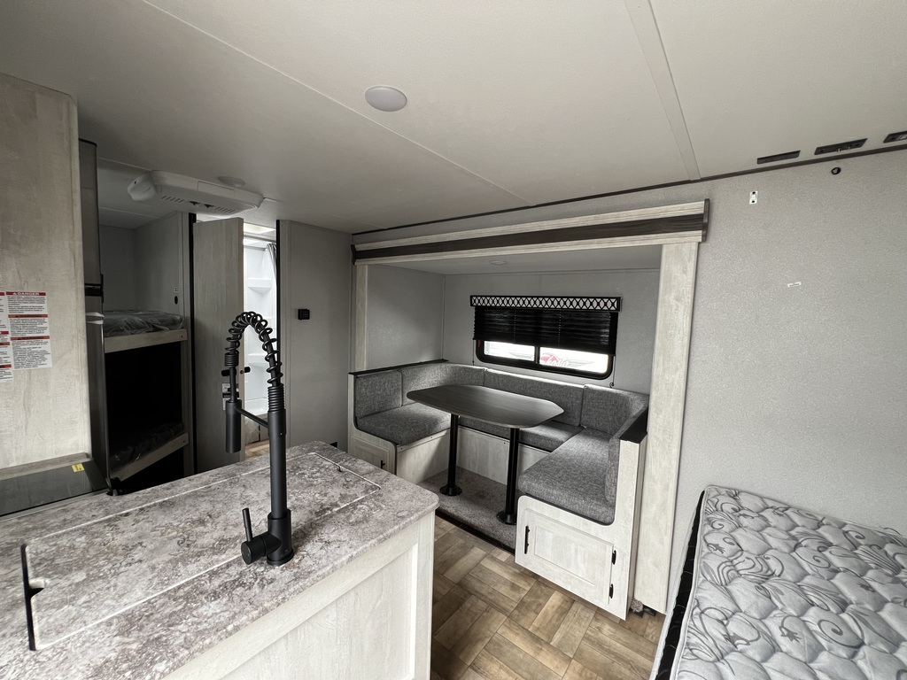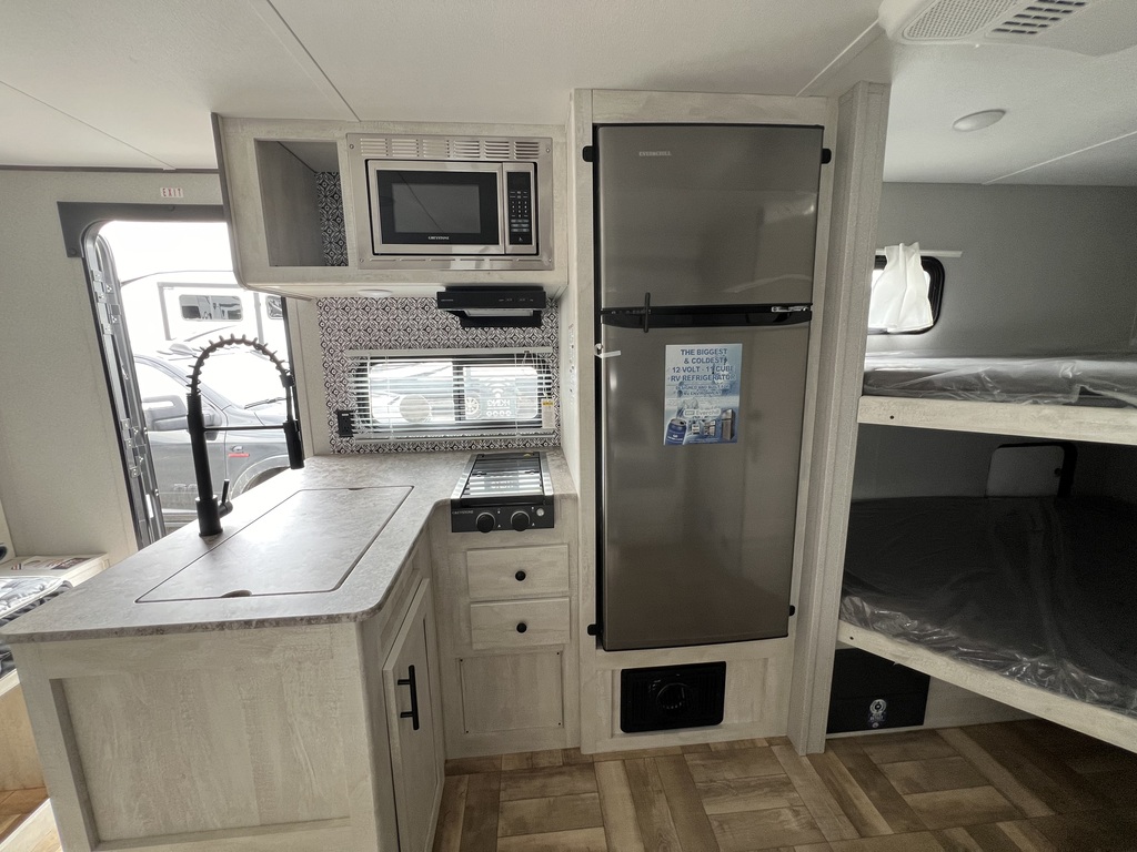 Peut accueillir jusqu'à 8 personnes Lit queen à l'avant 2 lits doubles superposés à l'arrière Cuisine équipée Coin repas en U / dînette convertible Salle de bain compacte avec douche, lavabo et toilette La Shasta 19BH est une roulotte compacte et bien conçue, idéale pour les familles qui cherchent à profiter du plein air avec tout le confort de la maison. Conçue pour être facilement tractée par la plupart des véhicules, elle offre une expérience de camping agréable. Intéressé(e) ? Venez voir ! Rien de mieux qu'une visite en personne pour solidifier votre opinion. Chez Roulottes Turmel, notre équipe motivée et dévouée saura vous rassurer et vous aider dans vos recherches. Notre but est d'offrir le meilleur service-conseil relatif aux véhicules récréatifs ainsi qu'aux produits de qualité s'y rattachant. Nous saurons trouver ce qui vous conviendra pour rendre vos futures expériences de voyage et de camping inoubliables. *L'unité en stock pourrait légèrement différer des images présentées.