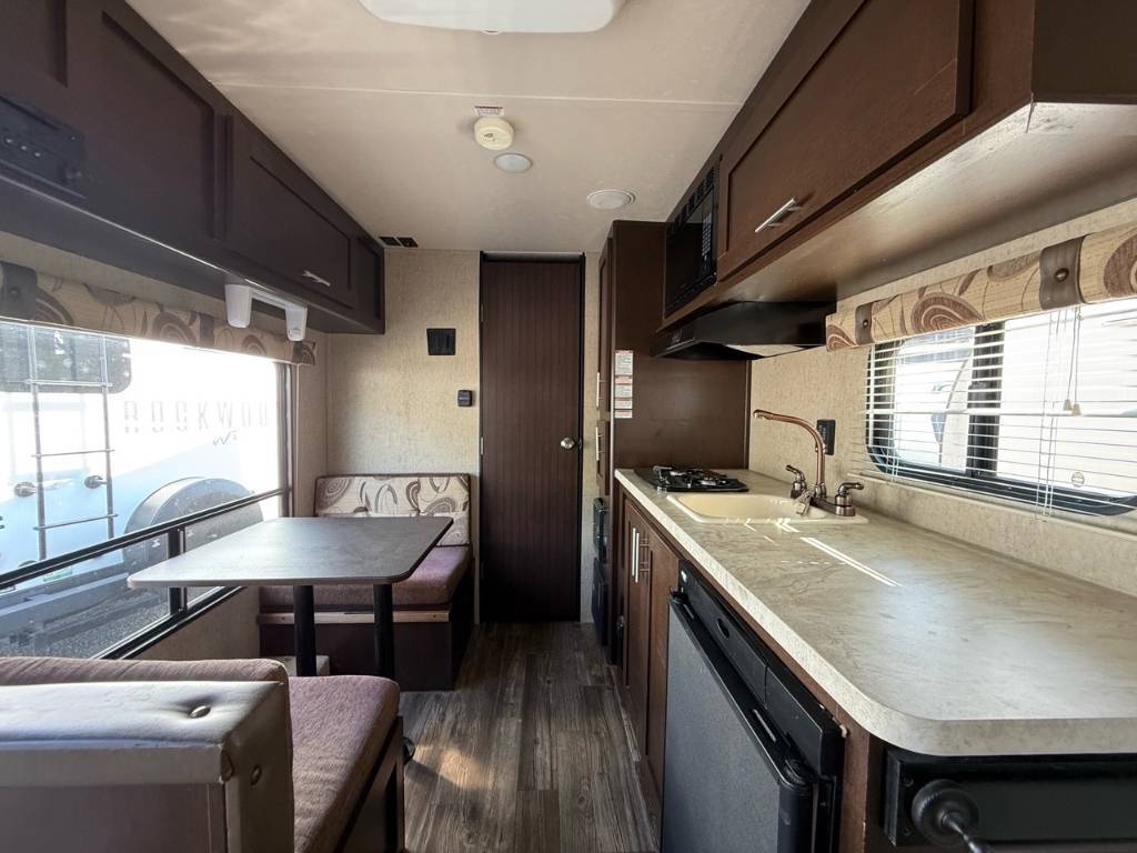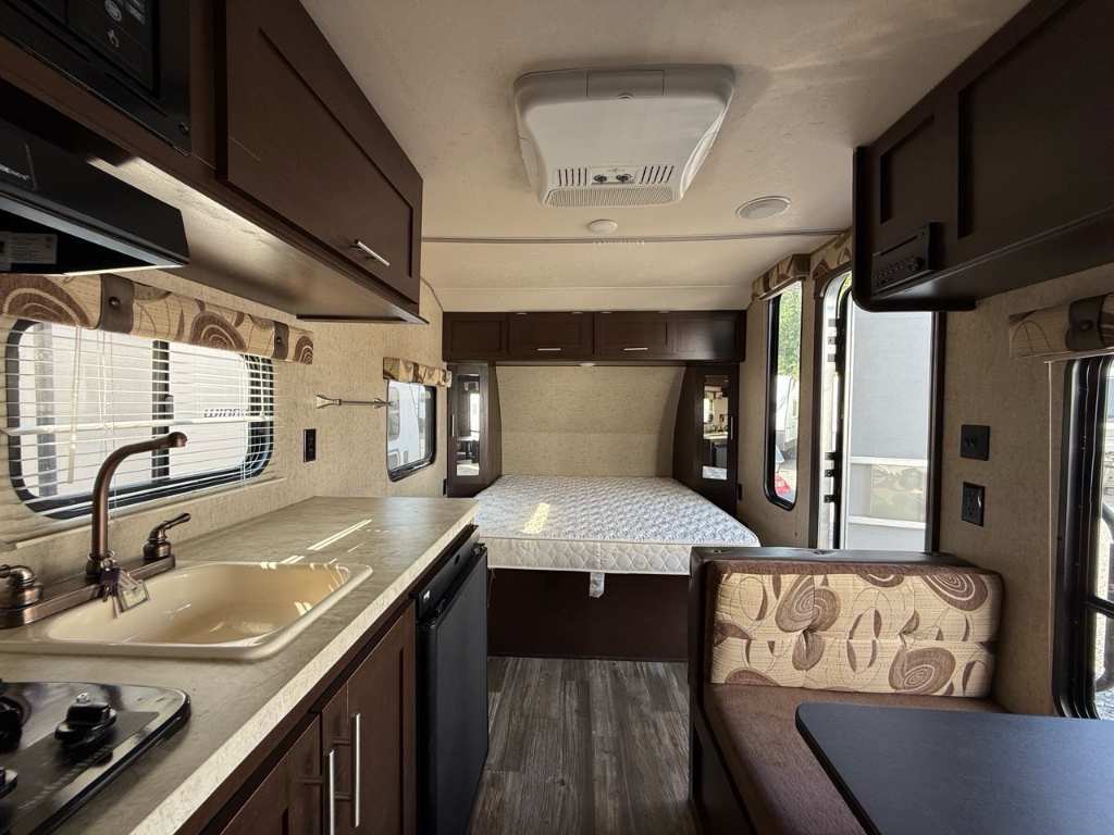 Forest River Cherokee 16FQ 2017Roulotte – Forest River 16FQ Cherokee - Petite par sa taille, grande par sa fonctionnalité — la Forest River 16FQ 2017 est la roulotte idéale pour ceux qui veulent voyager léger tout en profitant du confort d’un VR complet. Dimensions & Capacités : • Longueur totale : 21.5 pieds • Poids à sec : 2 919 lbs • Réservoir d’eau douce : 32 gal • Réservoirs d’eaux usées : 46 gal • Couchages : Jusqu’à 3 personnes 5 caractéristiques principales : • Légère et compacte - Avec un poids à vide de 2?919 lb, elle est facilement tractable par un VUS ou un petit camion. • Bonne autonomie - Réservoirs de 32 gal (eau propre) et 23 gal pour eaux usées, plus une bonbonne de propane de 20 lb. • Cuisine pratique et complète - Comprend une cuisinière 2 ronds, un évier, un frigo, et une dinette transformable en couchage. • Couchage pour 2 à 3 personnes - Un lit queen à l’avant et une dinette convertible, parfait pour un couple ou petite famille. • Salle de bain arrière complète - Toilette, douche et lavabo intégrés — rare pour une roulotte aussi compacte. Compacte, autonome et bien pensée, cette roulotte offre tout ce qu’il faut pour vivre l’aventure… sans compromis, ni surcharge. *** Prendre note que les photos et les options décrites peuvent différées *** Toute l'équipe de Centre du VR est fière de vous présenter le plus vaste inventaire de véhicules récréatifs neufs et d'occasions à vendre au Québec. Vous y trouverez notamment les marques Columbus, Rockwood, Impression, Kodiak, Coleman, Cruiser RV, Flagstaff, E-Pro, Springdale, Sunset Trail, Cougar, Chaparral, Bontrager Outdoors, motorisés Axis, Hurricane, Outlaw, Coachmen Cross Trail, Prism, Echelon, Fleetwood, Four winds, Compass, Beyond, Nova et Pixel. Remorques N&N, Apogée et Armorteck sont aussi disponibles. En inventaire pour vous, la série de génératrices Ducar. Vous avez un coup de coeur ? Envoyez-nous une demande d'information. Financement sur place. N'oubliez pas également que rien ne vaut une visite du modèle qui vous intéresse pour vous aider à prendre une décision éclairée. Passez donc nous voir afin de jeter un coup d'oeil plus détaillé à nos caravanes et caravanes à sellettes neuves.