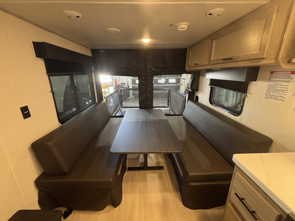 GREY WOLF 25RR BLACK LABEL 2026. Roulotte cargo avec un poids de 5300 livres INTÉRIEUR: - Cuisine avec comptoir robuste, évier double, cuisinière 3 ronds, micro-ondes convection et air fryer et grand réfrigérateur - Grande banquette en cuir qui se transforme en lit pour les invités - Chambre avant avec lit queen et rangement tout autour - Salle de bain avec belle vanité, beaucoup de rangement et douche en coin EXTÉRIEUR: - Marches ultra robustes - Jack électrique - Finition gel coat - Fenêtres sans contour - Coffres de rangement - Auvent électrique - Rampe cargo qui se transforme en patio photos à titre indicatif
