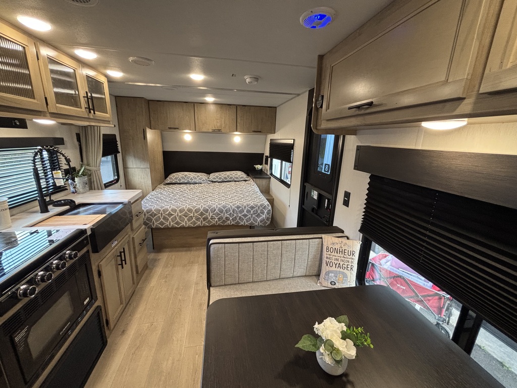 COMMANDEZ-MOI !!! Grey Wolf 22MKSE 2026. Roulotte idéale pour la famille avec ses lits superposés (double/double). Pèse seulement 4300 lbs! La chambre avant fermée pour les adultes comporte un lit queen et un garde-robe de chaque côté de celui-ci. La cuisine est munie d'un grand évier, une cuisinière et un four avec dessus vitré. Il y a une banquette qui se transforme en lit supplémentaire en plus d'avoir du rangement. Cette roulotte a un grand réfrigérateur et l'air climatisé à contrôle électronique. La salle de bain a un bain douche et un ventilateur à haute capacité. Elle est très bien équipée pour profiter de l'extérieur avec son auvent électrique et ses haut-parleurs extérieurs. Pour faciliter la vie, il y a beaucoup de rangement extérieur. Financement facile sur place. photos à titre indicatif