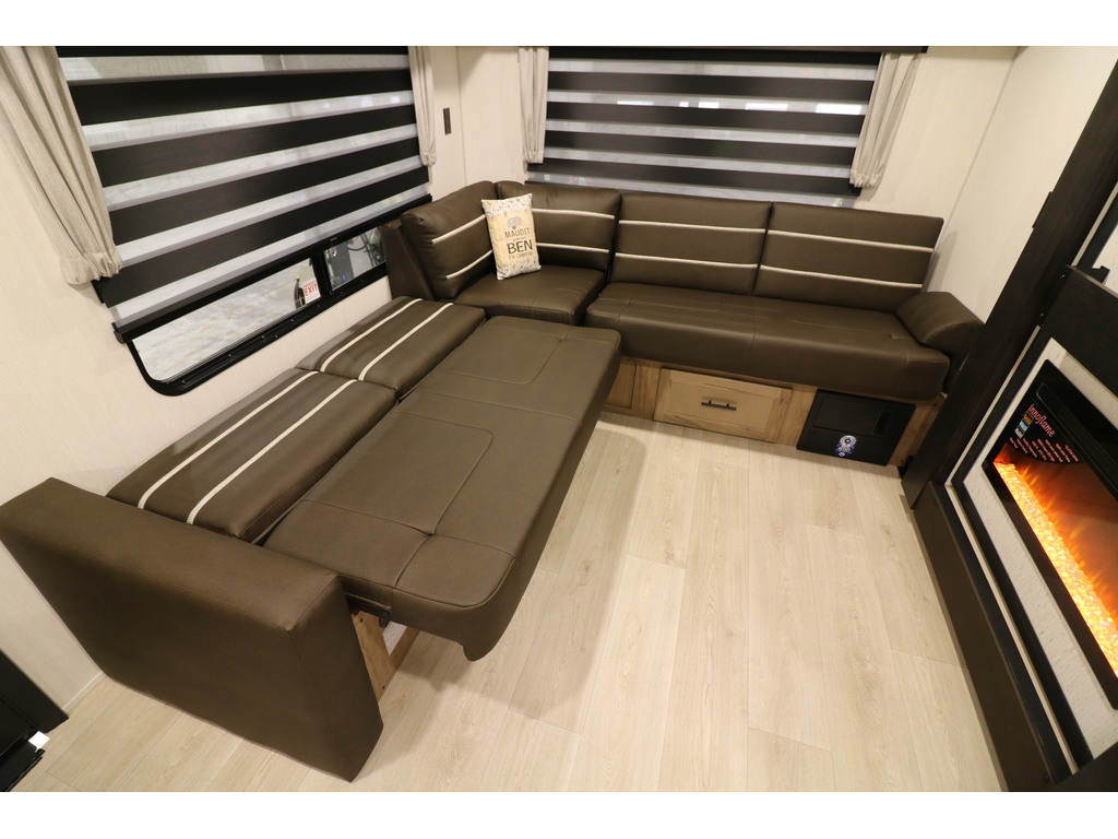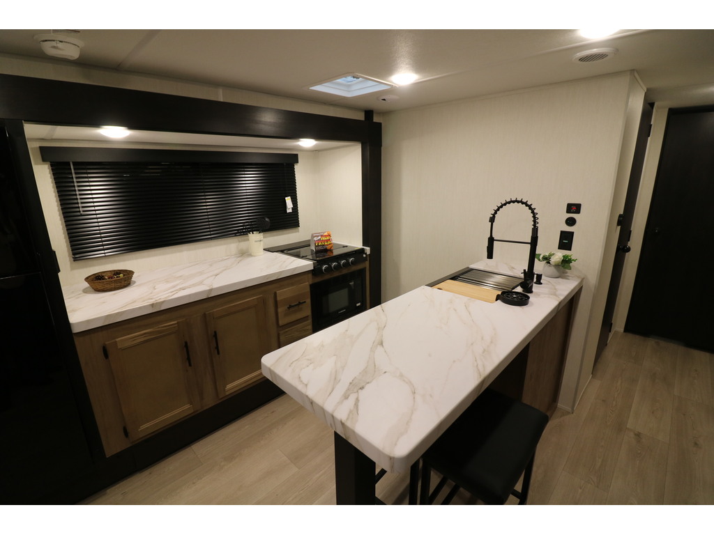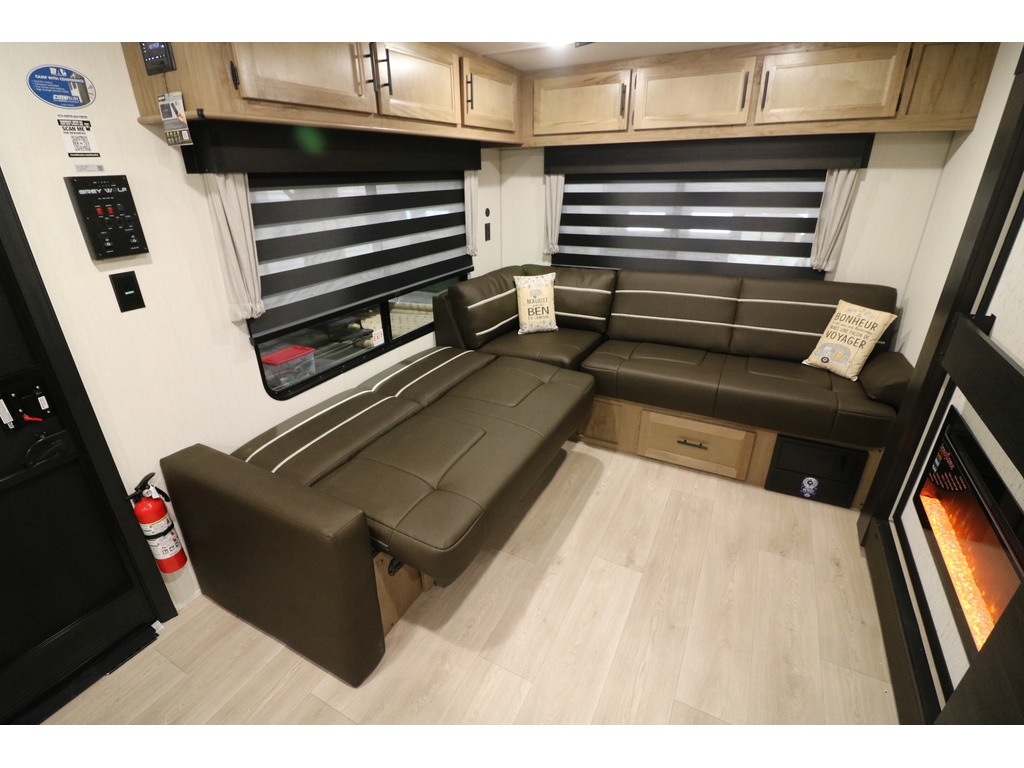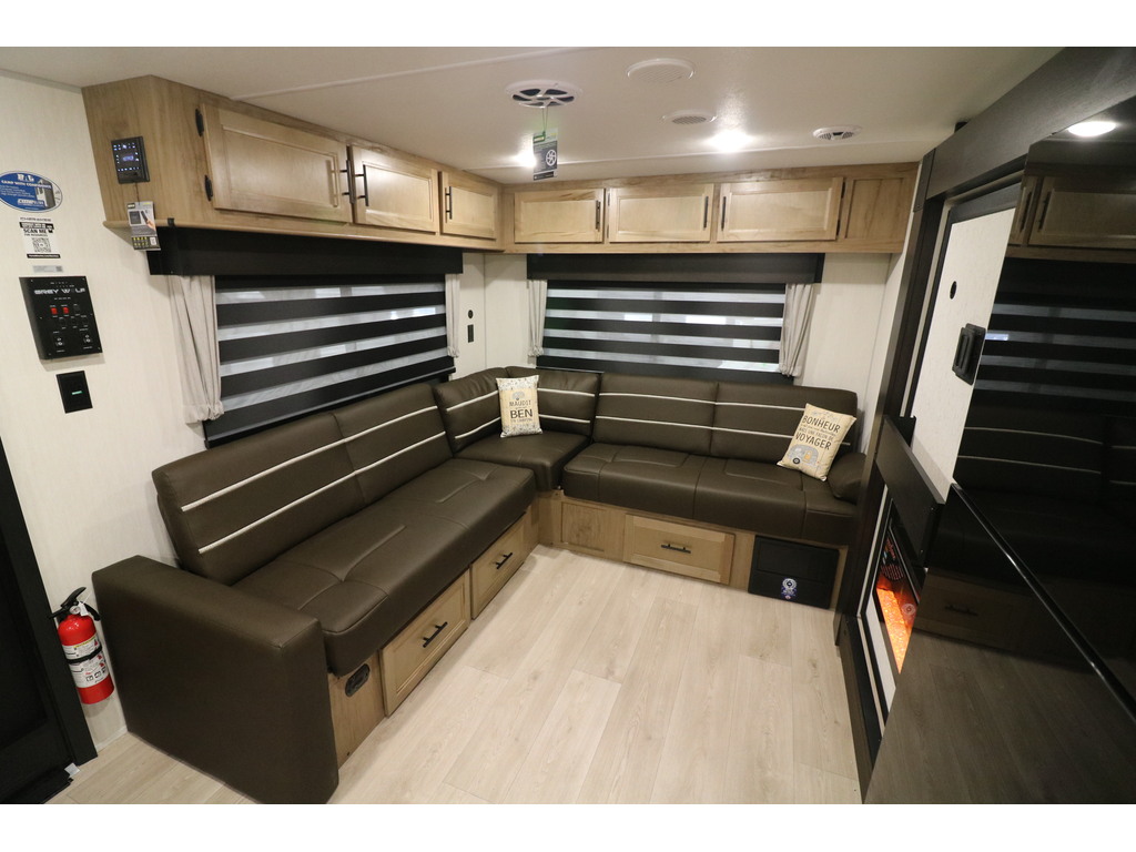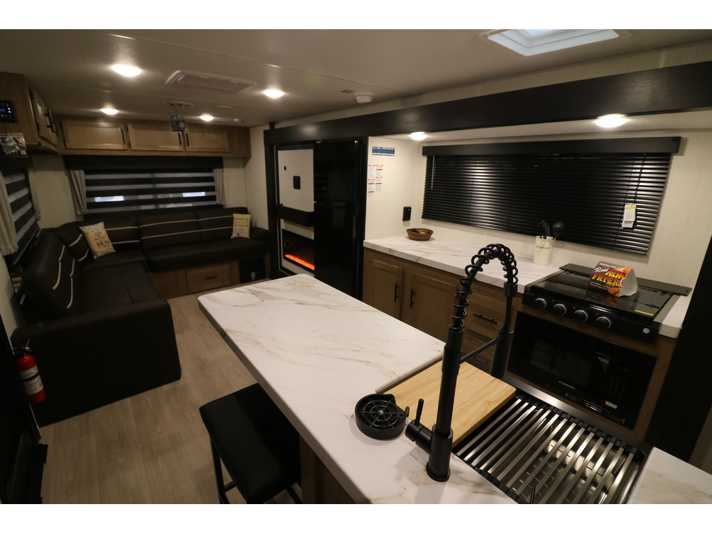 GREY WOLF 27LH 2026 ROULOTTE POUR COUPLE AVEC UN POIDS DE 5900 LIVRES. INTÉRIEUR: - Cuisine avec grand évier double, cuisinière avec dessus vitré, grand réfrigérateur et micro-ondes. - Grand îlot bistro avec tabourets doubles de chaque côté - Grand espace comptoir pour cuisiner - Foyer électrique avec grand rangement derrière - Chambre avant avec très grand lit et beaucoup de rangement - Salle de bain centrale toute équipée - Très grand sofa en forme de L entouré d'une belle fenestration EXTÉRIEUR: - Marches ultra robustes - Auvent électrique - Coffres de rangement - Jack électrique photos à titre indicatif