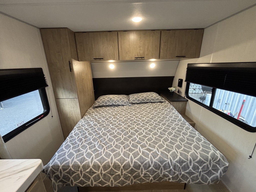 COMMANDEZ MOI!!!!! Grey Wolf 22MKSE 2026. Roulotte idéale pour la famille avec ses lits superposés (double/double). Pèse seulement 4300 lbs! La chambre avant fermée pour les adultes comporte un lit queen et un garde-robe de chaque côté de celui-ci. La cuisine est munie d'un grand évier, une cuisinière et un four avec dessus vitré. Il y a une banquette qui se transforme en lit supplémentaire en plus d'avoir du rangement. Cette roulotte a un grand réfrigérateur et l'air climatisé à contrôle électronique. La salle de bain a un bain douche et un ventilateur à haute capacité. Elle est très bien équipée pour profiter de l'extérieur avec son auvent électrique et ses haut-parleurs extérieurs. Pour faciliter la vie, il y a beaucoup de rangement extérieur. Financement facile sur place. photos à titre indicatif