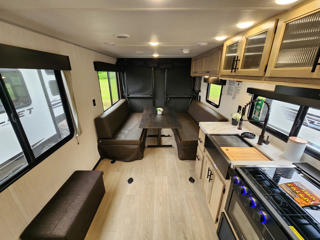 GREY WOLF 25RR 2026. Roulotte cargo avec un poids de 6000 livres INTÉRIEUR: - Cuisine avec évier double, cuisinière 3 ronds, micro-ondes et grand réfrigérateur - Grande banquette en cuir qui se transforme en lit pour les invités - Chambre avant avec grand lit et rangement tout autour - Salle de bain avec belle vanité, beaucoup de rangement et douche en coin EXTÉRIEUR: - Marches ultra robustes - Jack électrique - Coffres de rangement - Auvent électrique - Rampe cargo qui se transforme en patio photos à titre indicatif