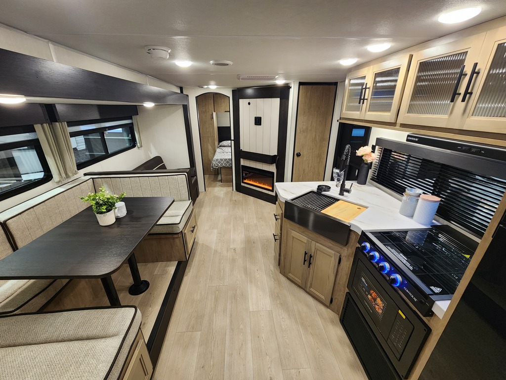 ROULOTTE FAMILIALE GREY WOLF 26KF 2026 ELLE A UN POIDS DE 6400 LIVRES. INTÉRIEUR: - Cuisine complète avec grand réfrigérateur - Grande banquette en U qui se transforme en lit - Divan qui se transforme en lit - Lits superposés doubles à l'arrière - Grand lit avant avec rangement tout autour - Salle de bain arrière avec vanité, pharmacie, douche et toilette EXTÉRIEUR: - Auvent électrique avec LED - Cuisine extérieure - Vérins électriques - Marches solides - Coffres de rangement *Photos à titre indicatif*