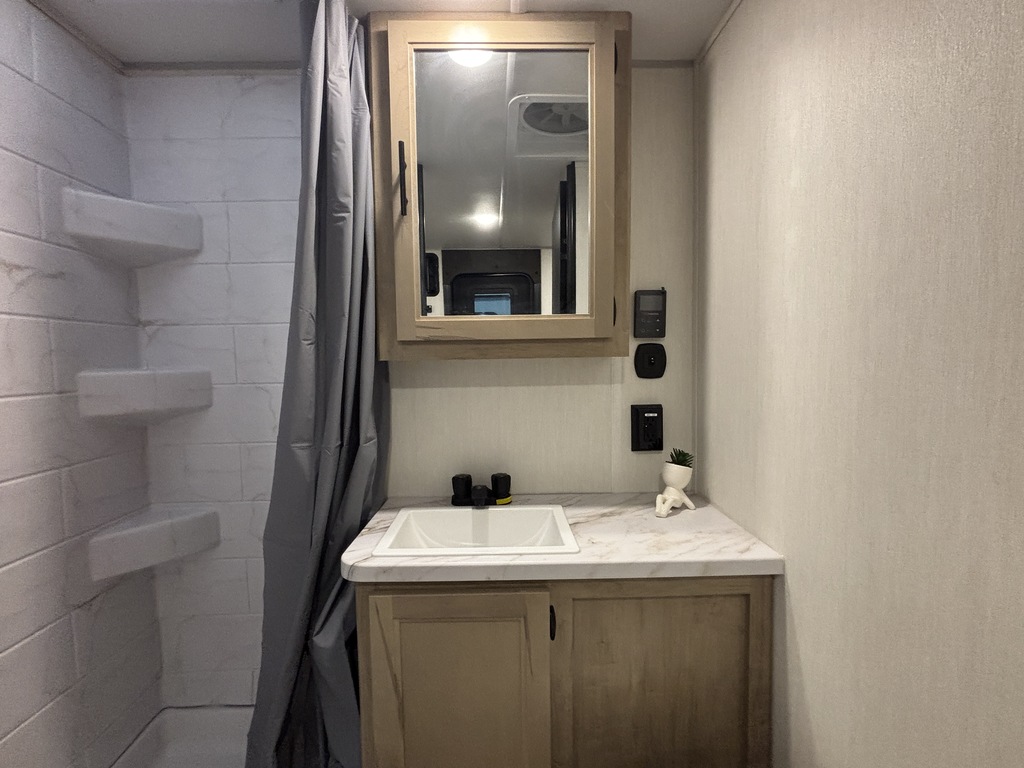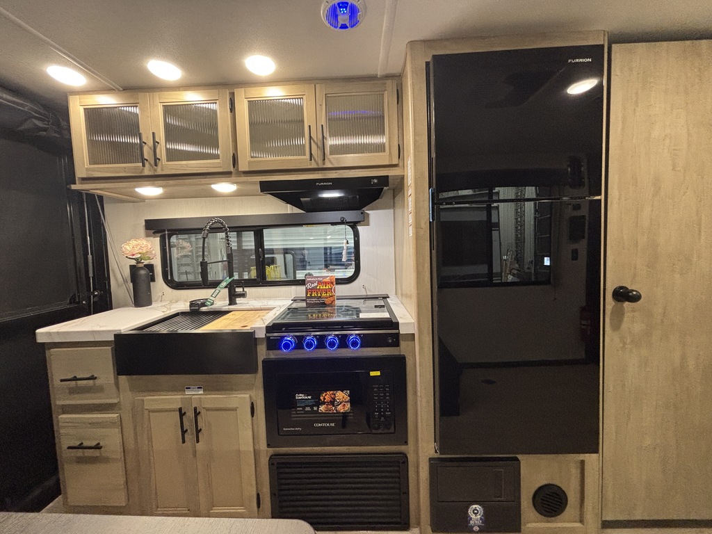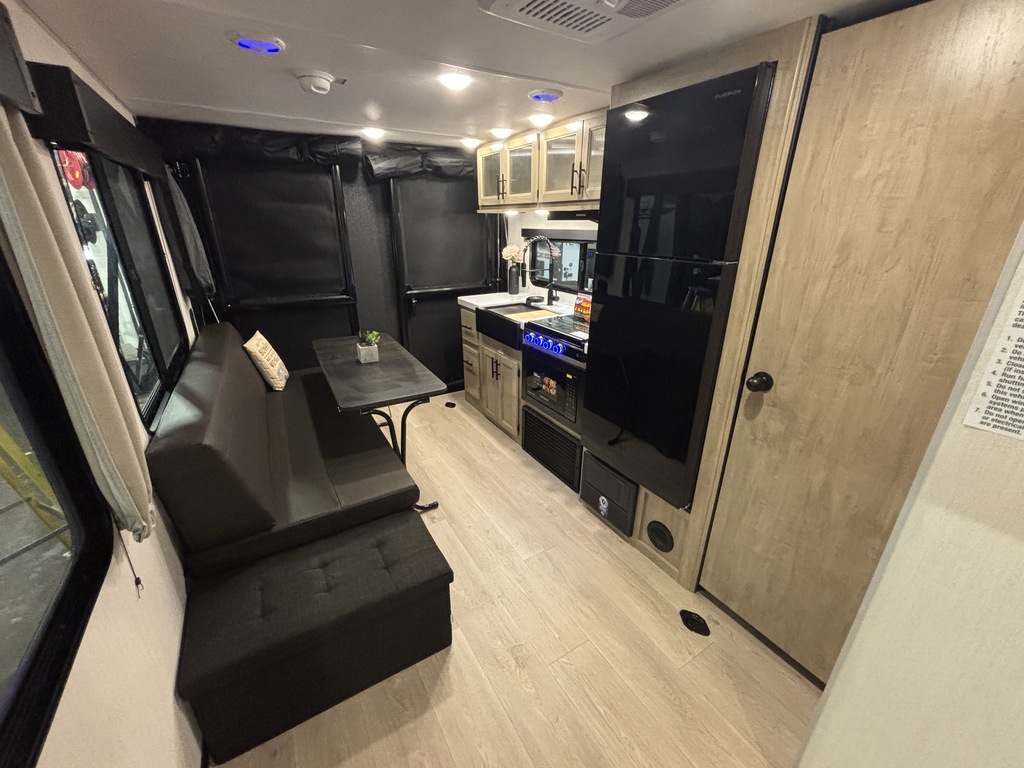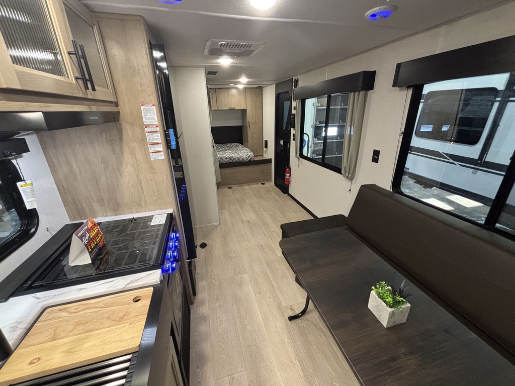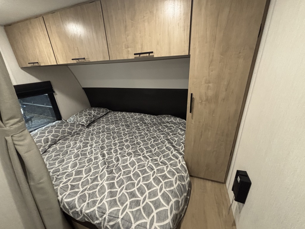 GREY WOLF 18RR 2026 CARGO Elle pèse 5 000 lbs et peut coucher jusqu'à 3 personnes. INTÉRIEUR: - Cuisine complète avec grand réfrigérateur - Sofa fait un lit supplémentaire - Table amovible - Grand lit à l'avant - Moustiquaire - Salle de bain complète EXTÉRIEUR: - Auvent électrique avec LED - Vérins électriques - Possibilité de faire un patio avec la rampe de chargement - Porte cargo assistée - Coffre de rangement - Marches solide * Photos à titre indicatif *