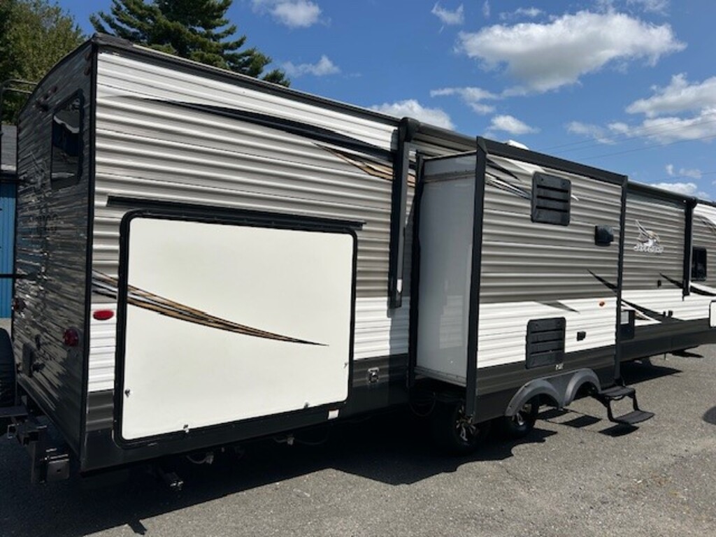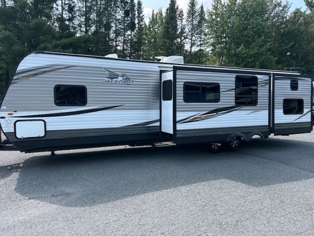 JAYCO JAYFLIGHT 33 RBTS 2019 3 EXTENSIONS cuisine extérieur avec jack avant et auvent électrique ,2 chambres fermer 4 bunk bed peut coucher jusqu a 10 personnes ,grand garde mangé islo central ,frigidaire au propane et électrique four et poêle au propane micro onde roue alcoa très spacieuse idéal pour familles