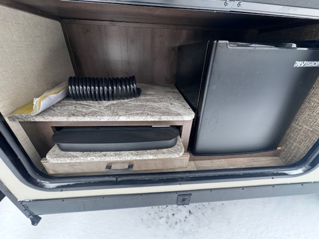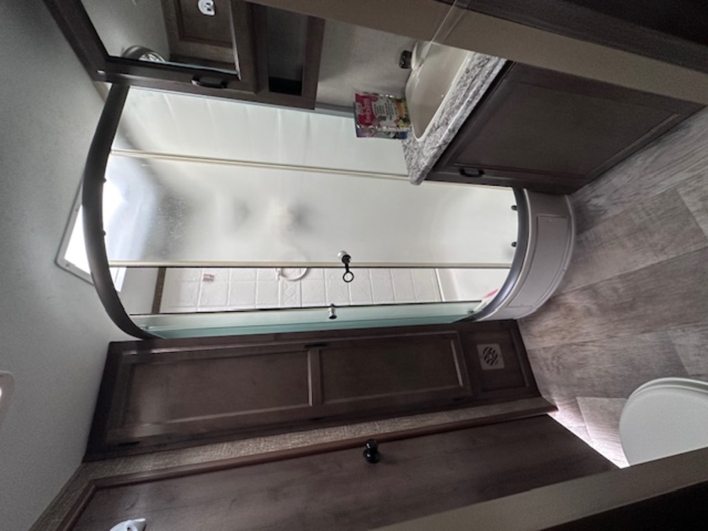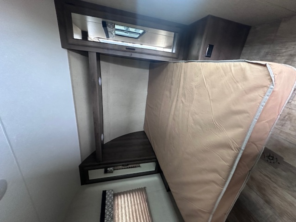 Options : Jantes aluminium, Convertisseur de courant continu, Réservoir de propane, Climatiseur au plafond, Vérin stabilisateur, Douche extérieure, Échelle, Douche, Lit queen-size, Canapé-lit, Prise électrique, Cric électrique, Détecteur LPG/CO2, Prise cable, Antenne pour téléviseur, Micro-onde, Cuisinière, Hotte, Fourneau, Auvent, Chauffe-eau