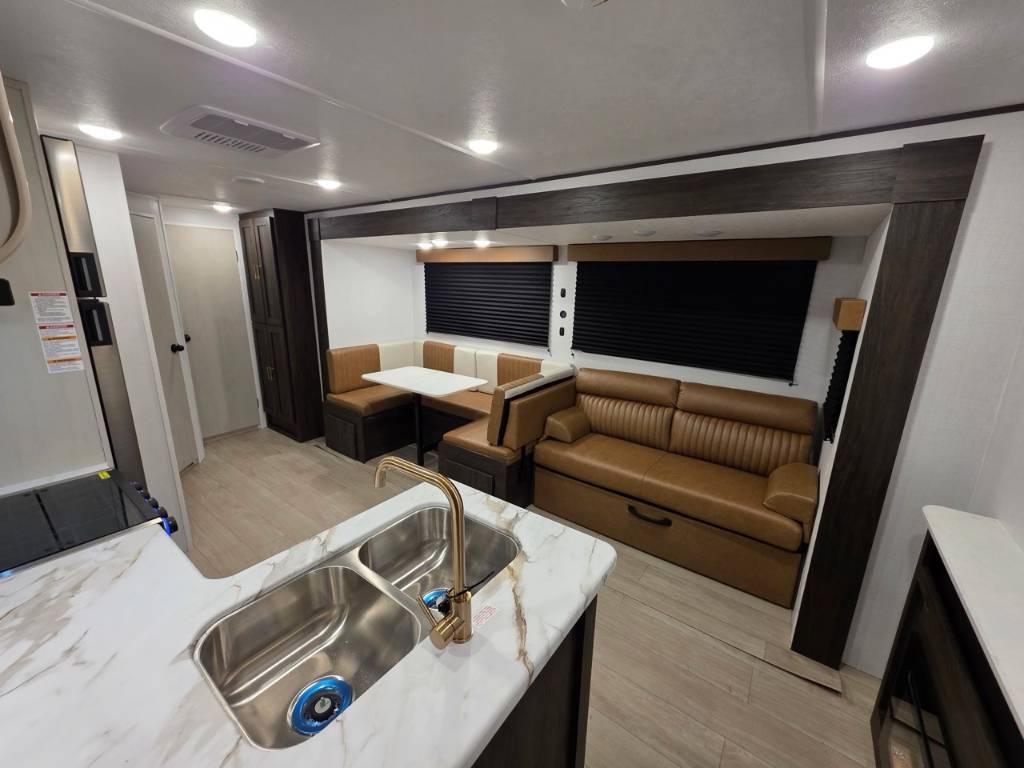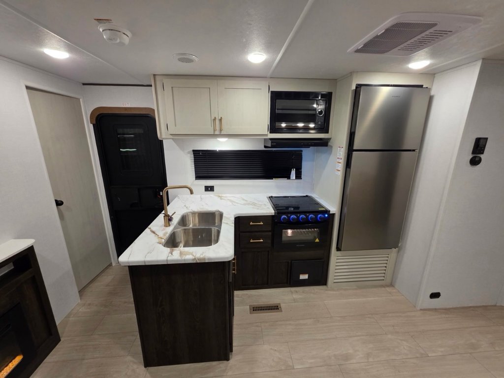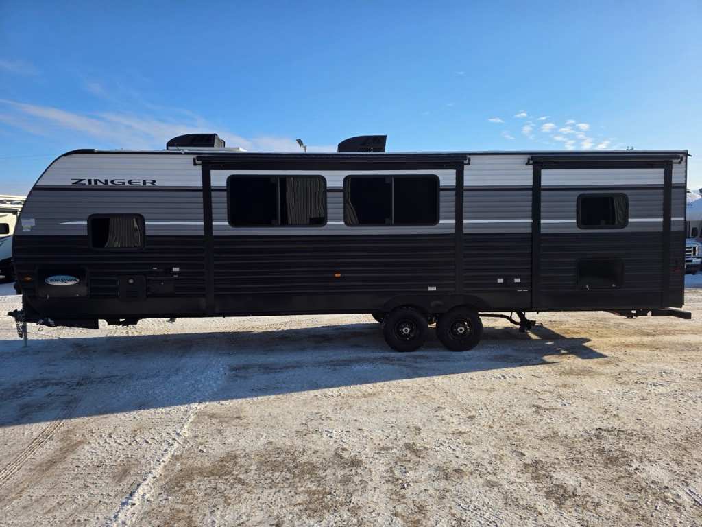 KEYSTONE RV ZINGER 320FB 2026 Poids à sec : 7 695 livres Poids sur la flèche : 1 040 lb Longueur étendue : 36' 1'' Hauteur extérieure avec climatisation : 3,5 m Frais/Noir/Gris : 45/42/42. Réfrigérateur 12 volts 13 500 kW, deuxième climatiseur non gainable 15 000 climatiseurs gainables Service 50 A Préparation de la caméra de recul chasse d'eau du réservoir d'eaux noires Enceinte Bluetooth Cuisinière à brûleurs avec four Cheminée électrique Dessous de caisse fermé Four Emballage en cuir Détecteur de LP Micro-ondes Cuisine extérieure Auvent motorisé Vérins stabilisateurs de puissance Jack de langue électrique Peut accueillir 10 personnes Extension coulissante Couvercles coulissants Panneau solaire Roue de secours et support Chauffe-eau instantané/sans réservoir Antenne TV Ports USB. Centre du VR : Votre expert en véhicules récréatifs au Québec Découvrez le plus vaste inventaire de VR neufs et d'occasion au meilleur prix. Que vous cherchiez une roulotte, une caravane à sellette (fifth wheel), une caravane-portée, un motorisé ou une remorque, notre équipe vous propose les plus grandes marques : Roulottes et Fifth Wheels : Rockwood, Flagstaff, Cougar, Springdale, Sunset Trail, Chaparral, Columbus, Impression, Kodiak, Coleman, E-Pro, Cruiser RV. Motorisés (Classe A, B, C) : Axis, Hurricane, Fleetwood, Four Winds, Coachmen Cross Trail, Prism, Echelon, Outlaw, Beyond, Nova. Remorques et Équipements : NN, Apogée, Armorteck et génératrices Ducar ou Cummins. Bien plus que de la vente : Un service complet Département de pièces et boutique : Un inventaire massif de pièces de remplacement et d'accessoires de camping pour améliorer votre confort. Service et réparation : Un centre de service spécialisé pour l'entretien et la réparation de vos unités, assuré par des techniciens experts. Financement : Profitez de nos solutions de financement avantageuses directement sur place. Un modèle vous intéresse ou vous avez besoin d'un entretien ? Contactez-nous pour une demande d'information ou passez nous voir en succursale pour une visite ! Note : Les photos et options peuvent différer de la réalité.