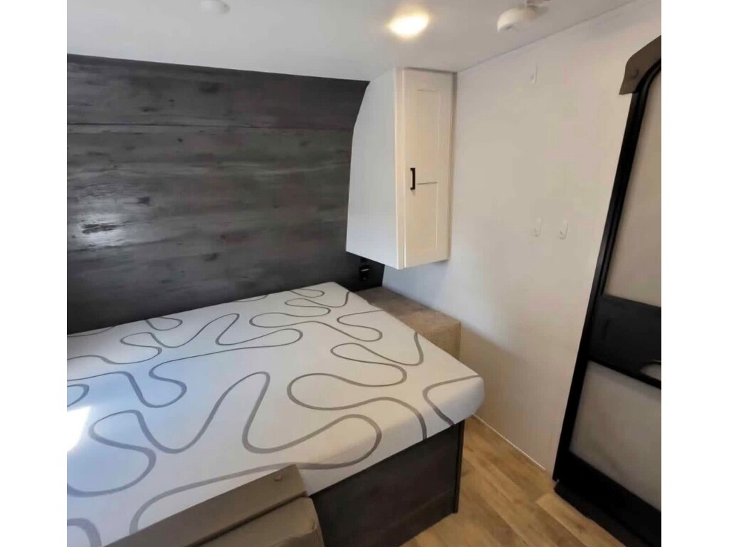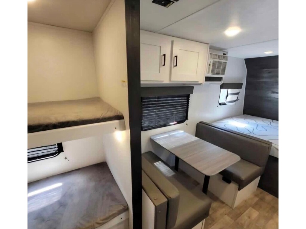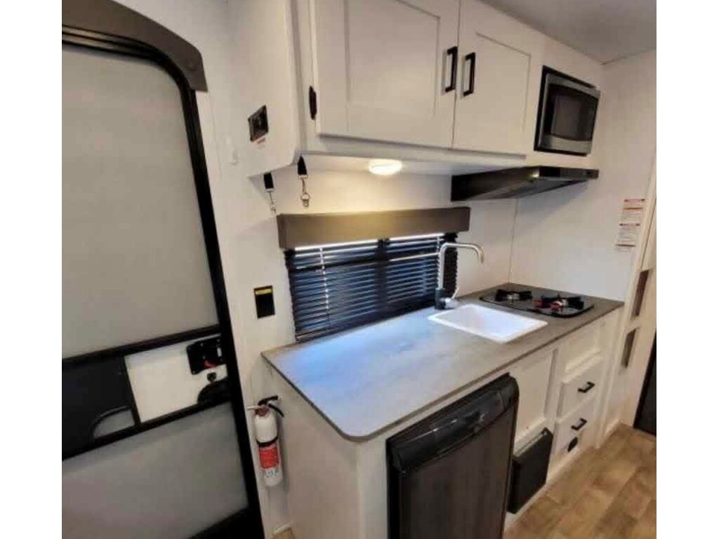 Options : Réservoir de propane, Vérin stabilisateur, Douche, Toilette, Lit queen-size, Lits superposés, Prise électrique, Détecteur LPG/CO2, Prise cable, Antenne pour téléviseur, Micro-onde, Cuisinière, Auvent, Chauffe-eau