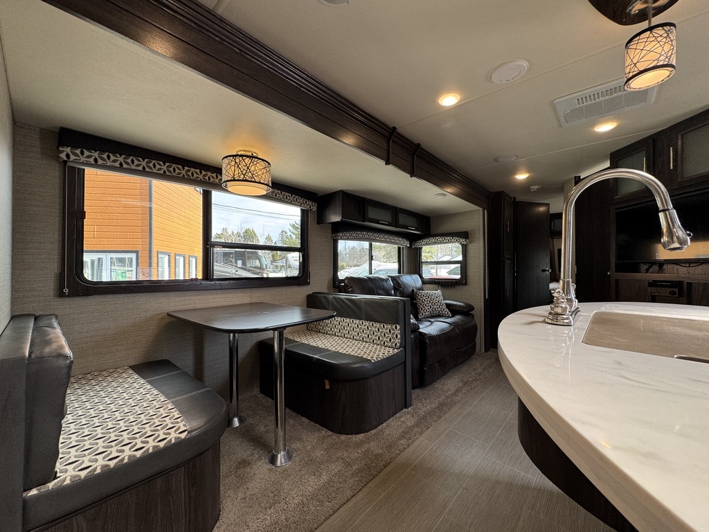 Consignation — nous représentons notre client pour la vente de cette roulotte. Les accessoires actuellement présents peuvent également être inclus si désiré. La Dutchmen Kodiak Ultimate 330BHSL 2018 est une roulotte familiale spacieuse avec trois extensions (slide-outs) offrant un grand espace de vie. Elle comprend une chambre FERMÉE avec lit Queen à l’avant et une véritable bunkhouse FERMÉE à l’arrière avec plusieurs lits superposés et une dinette pour les enfants ou les invités. Cuisine conviviale avec îlot central, cuisinière 3 brûleurs avec four, micro-ondes et réfrigérateur Norcold au propane. Les deux slides opposés dans l’aire de vie créent un espace ouvert avec dinette et divan convertible. À l’extérieur, profitez d’une cuisine extérieure complète (réfrigérateur, évier et comptoir) ainsi que d’un grand rangement traversant à l’avant. Équipements : vérin électrique, stabilisateurs électriques, auvent de slide-out coté conducteur, moniteur central et deux bonbonnes de propane de 30 lb. ?? Visible chez VRML Roulottes ?? Contactez-nous pour planifier une visite.