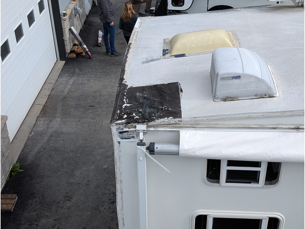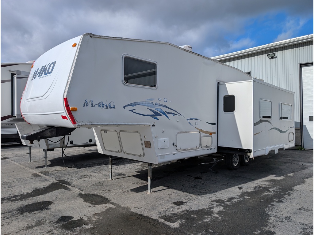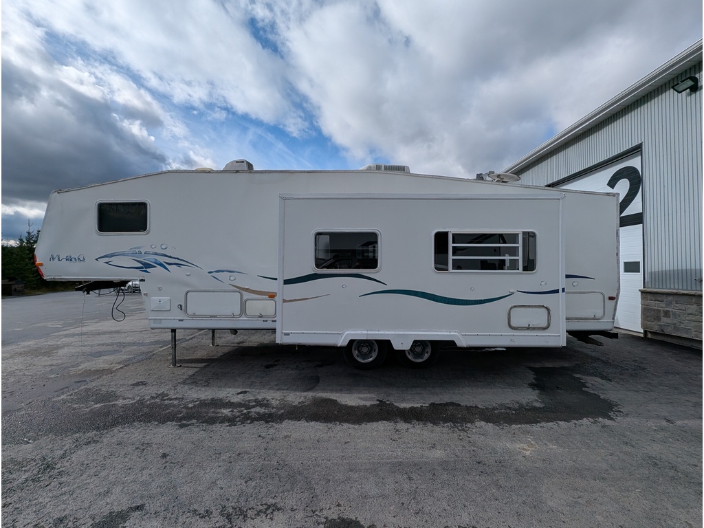 *PROJET POUR EXCELLENT BRICOLEUR* -DÉLAMINATION SUITE A UN INFILTRATION D'EAU LA FIFTH WHEEL MAKO 28FRB 2002 A UNE LONGUEUR HORS TOUT DE 32' 3", POIDS DE 7812 LBS, 1 EXTENSION, 4 BUNK BED AVEC UNE PORTE COULISSANTE, 1 GRAND LIT, BEAUCOUP DE RANGEMENT, SALLE DE BAIN AVEC TOILETTE ET DOUCHE, RÉFRIGÉRATEUR AVEC CONGÉLATEUR, FOUR ET CUISINIÈRE À TROIS BRÛLEURS. VENDU TEL QUE VU