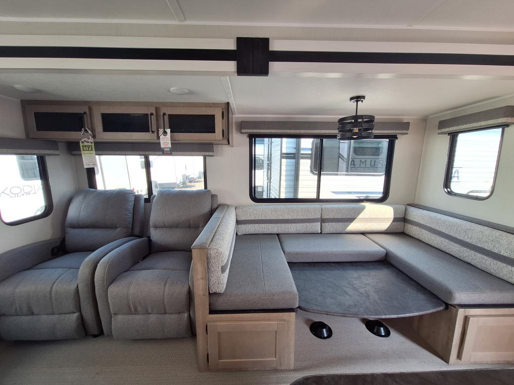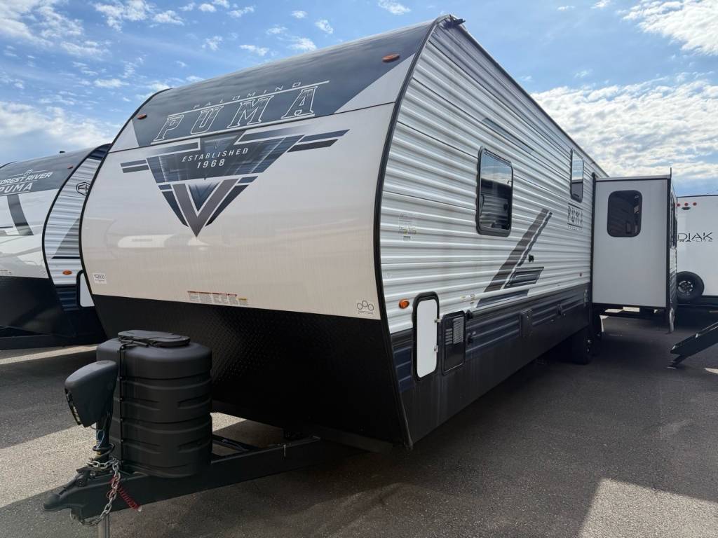 Palomino Puma 32MBDS 2024 Roulotte Puma 32MBDS 2024 Elle pèse 8 833 lbs et mesure 38,75pi. Belle grande caravane à selette avec deux extention en parallèles offrant énormément d'espace au niveau de l'aire commune. Canapé-lit, sofa style théâtre, foyer électrique, banquette en U, îlot central avec lavabo intégré, cuisine et salle de bain complète. Chambre des maîtres disposant d'un lit Queen et une cha,bre supplémentaire avec lit superposé et sofa-lit. Air climatisé, fournaise et prises électriques. Extérieur en aluminium avec auvent rétractable électrique de 15' , réservoir d'eau fraîche de 43 gal., réservoirs d'eaux usés de 70 gal. et deux réservoirs de propane d'une capacité totale de 40 lbs. Grand coffre de ranngement pleine largeur. *** Prendre note que les photos et les options décrites peuvent différées *** Toute l'équipe de Centre du VR est fière de vous présenter le plus vaste inventaire de véhicules récréatifs neufs et d'occasions à vendre au Québec. Vous y trouverez notamment les marques Columbus, Rockwood, Kodiak, Coleman, Cruiser RV, Flagstaff, E-Pro, Springdale, Sunset Trail, Cougar, Chaparral, Bontrager Outdoors, motorisés Axis,Hurricane, Outlaw, Coachmen Cross Trail, Prism, Echelon,Fleetwood, Four winds, Beyon, Nova, Patriot et Embassy Dolphin. Remorques N&N, Apogée et Armorteck sont aussi disponibles. En inventaire pour vous, la série de génératrices Ducar. Vous avez un coup de coeur ? Envoyez-nous une demande d'information,financement sur place. N'oubliez pas également que rien ne vaut une visite du modèle qui vous intéresse pour vous aider à prendre une décision éclairée. Passez donc nous voir afin de jeter un coup d'oeil plus détaillé à nos caravanes et caravanes à sellettes neuves.